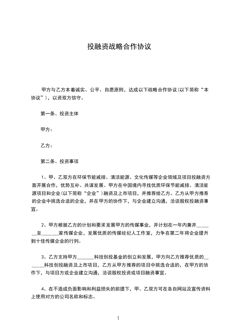 1.甲方同意向乙方投资人民币______元(大写______元整)。