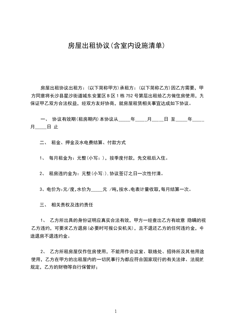 篇1房屋租赁合同