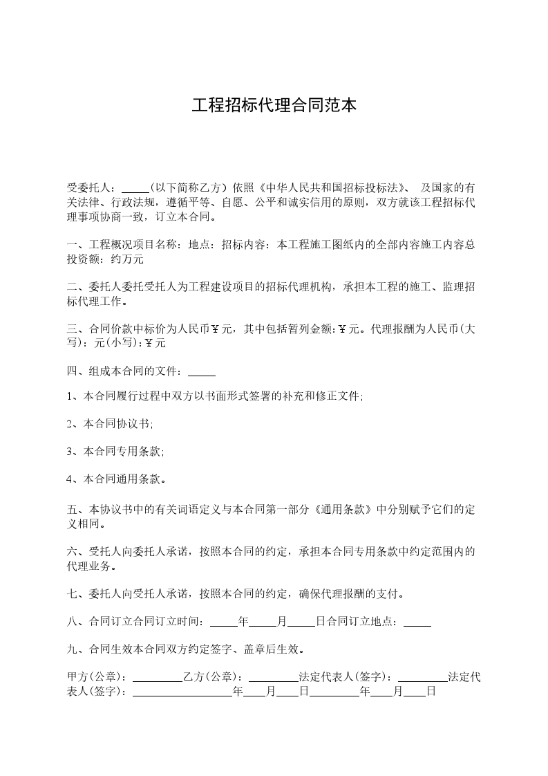 依照《中华人民共和国民法典》、《中华人民共和国招标投标法》及国家的有关法律、行政法规,遵循平等、自愿、公平和诚实信用的原则,双方就招标代理事项协商一致,订立本合同。