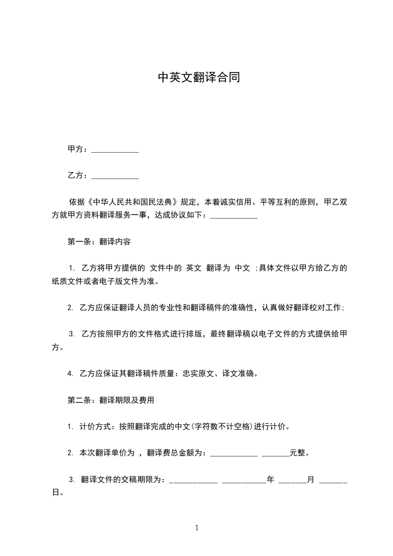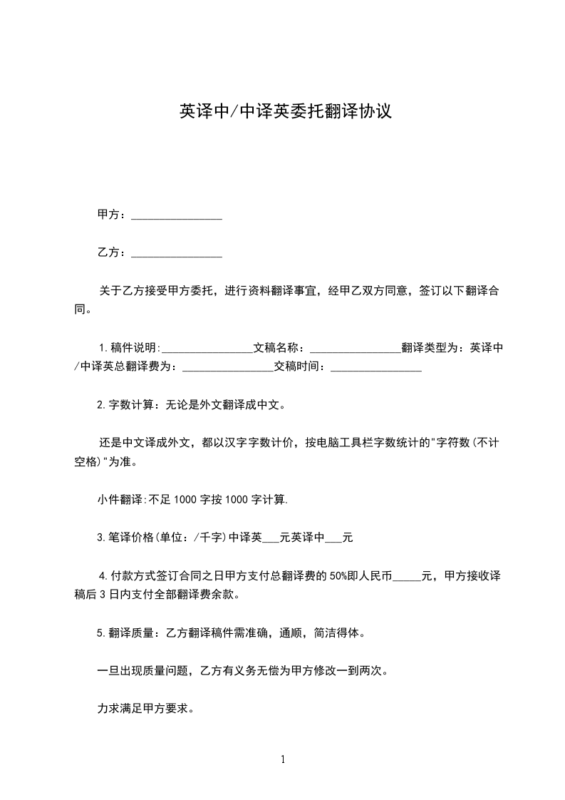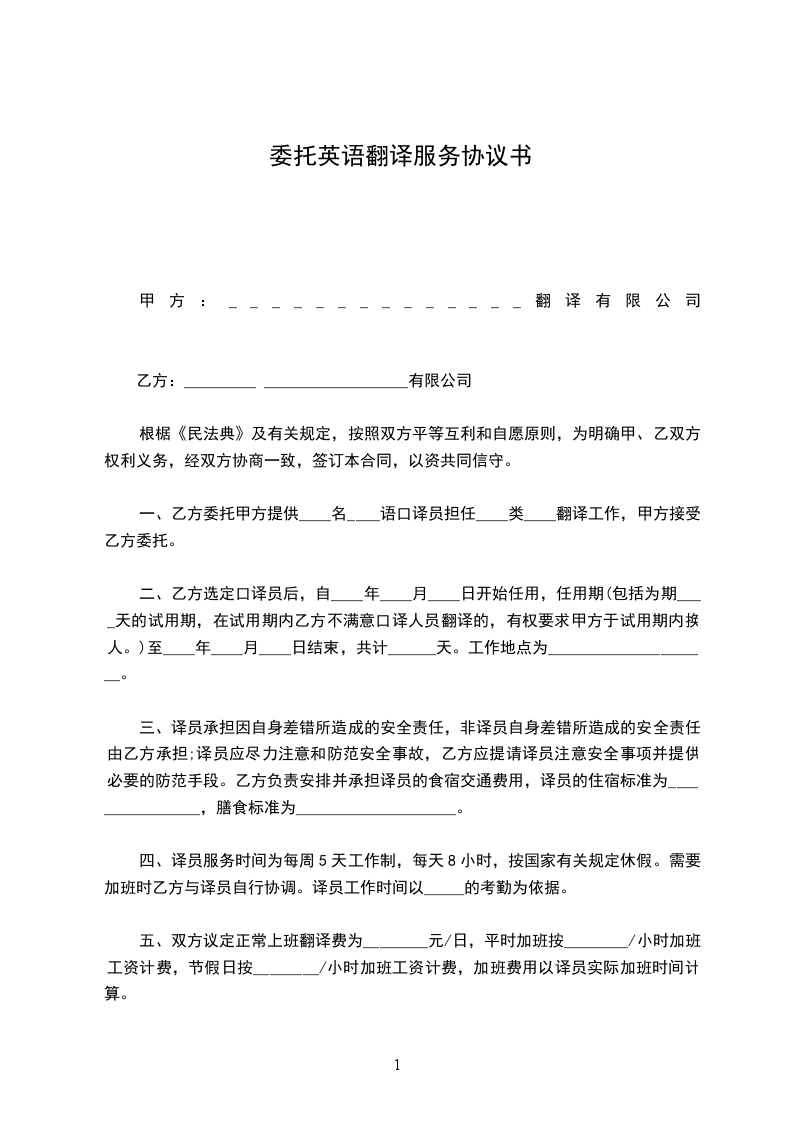 关于乙方接受甲方委托,进行资料翻译事宜,经甲乙双方同意,签订以下翻译合同。