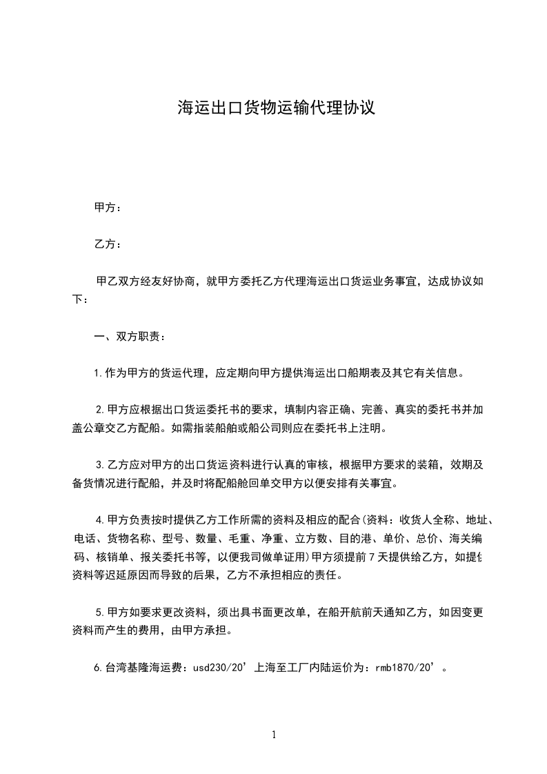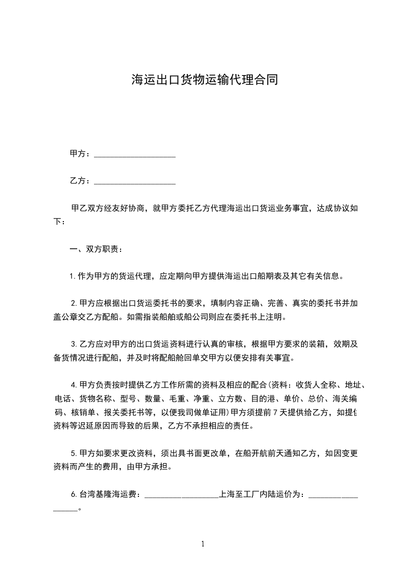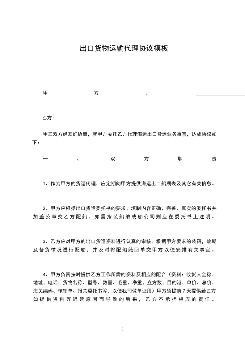 甲乙双方经友好协商,就甲方委托乙方代理海运出口货运业务事宜,达成协议如下: