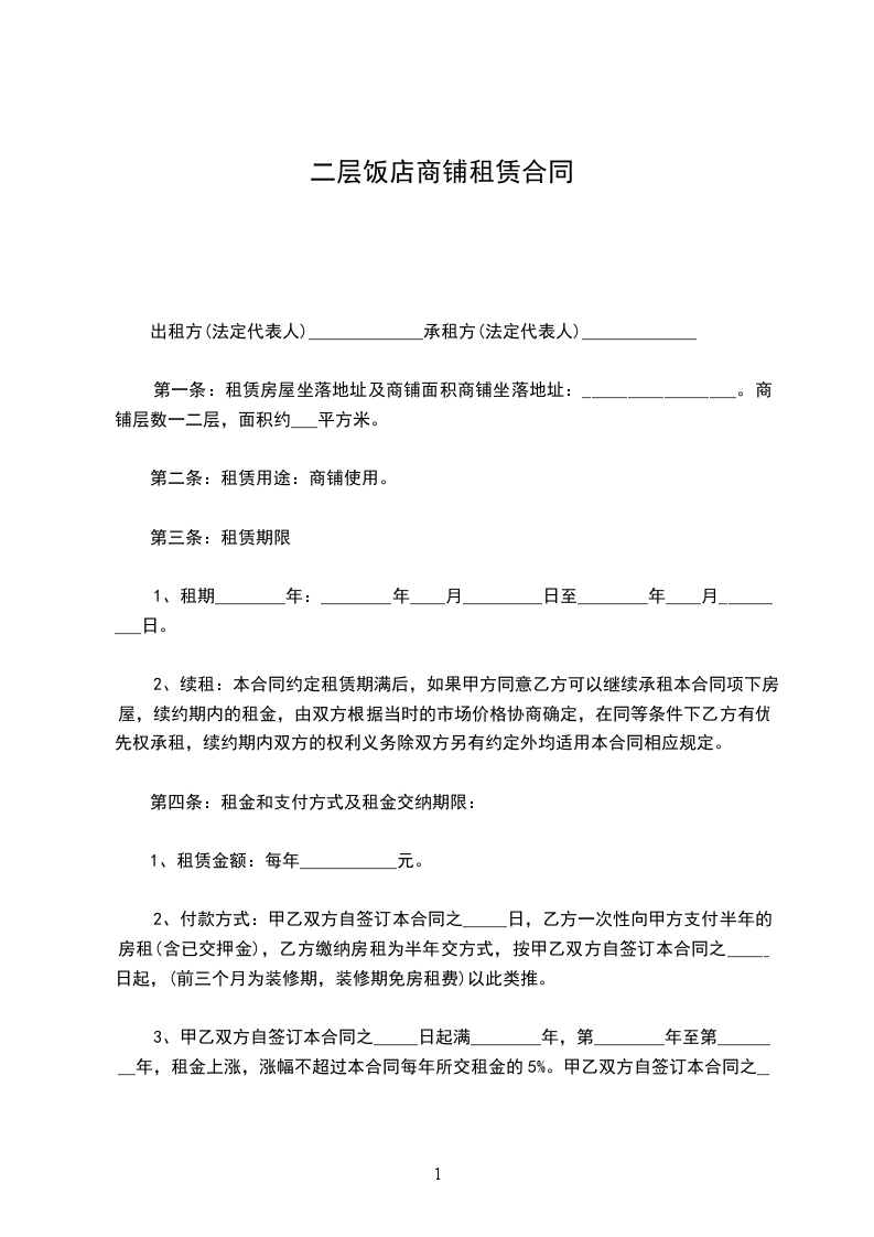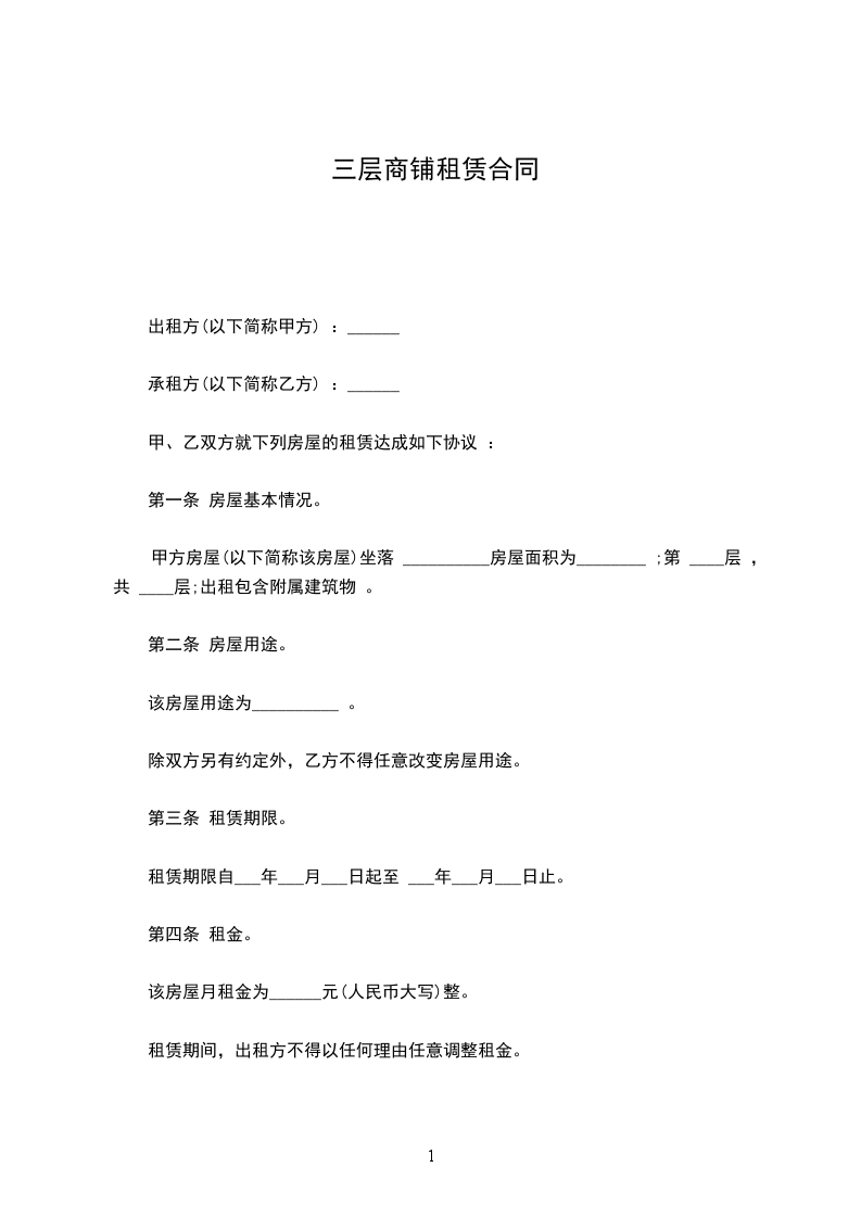 1、租金为_____元/平米/月。