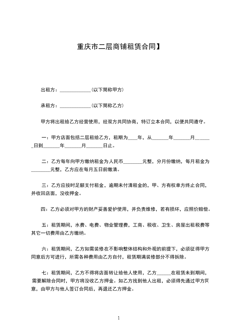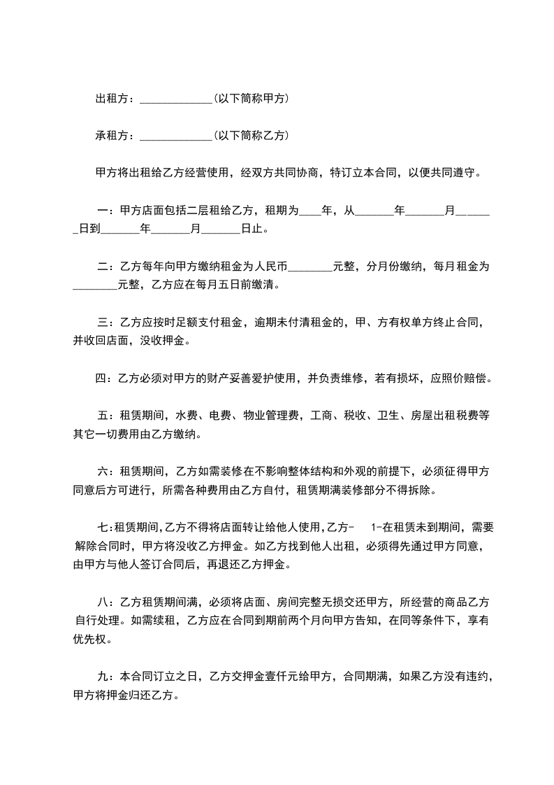 1、甲方保证出租商铺产权清楚,若有纠纷,由甲方负责处理。