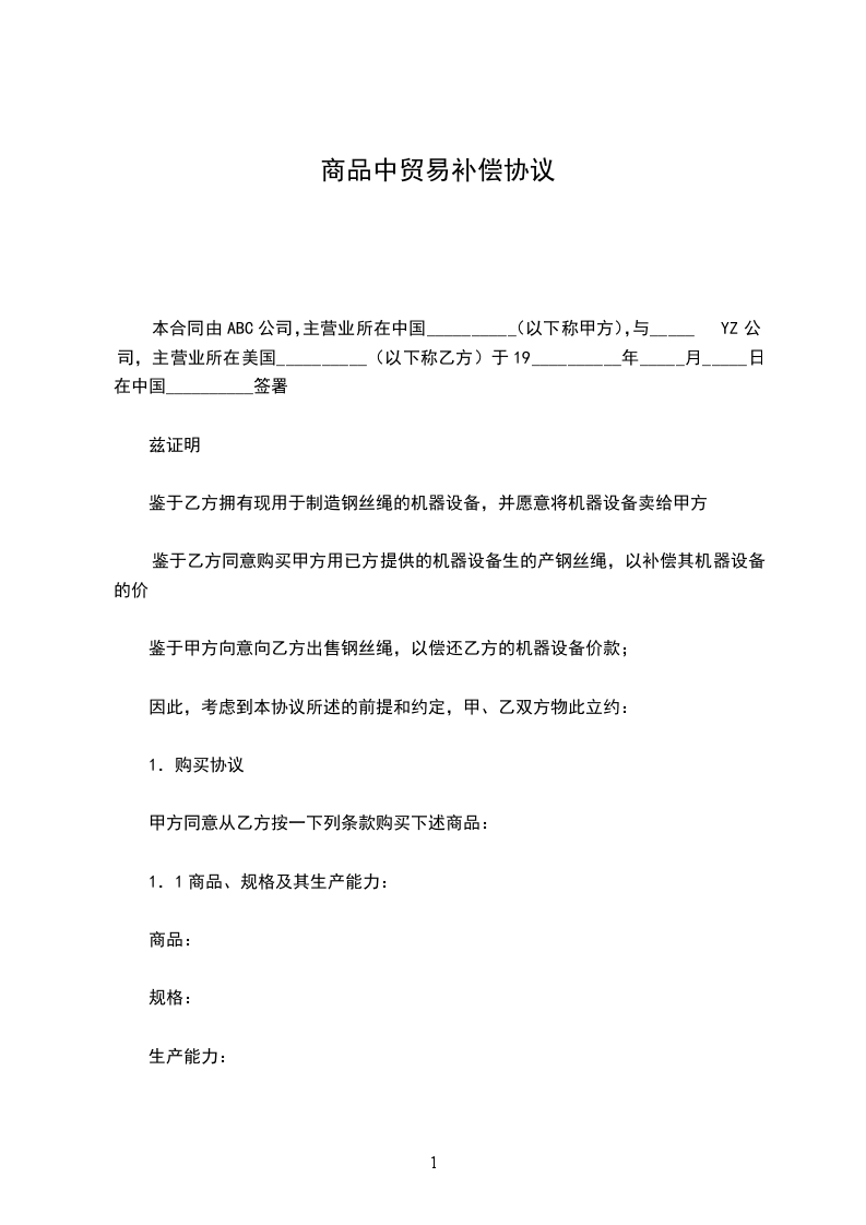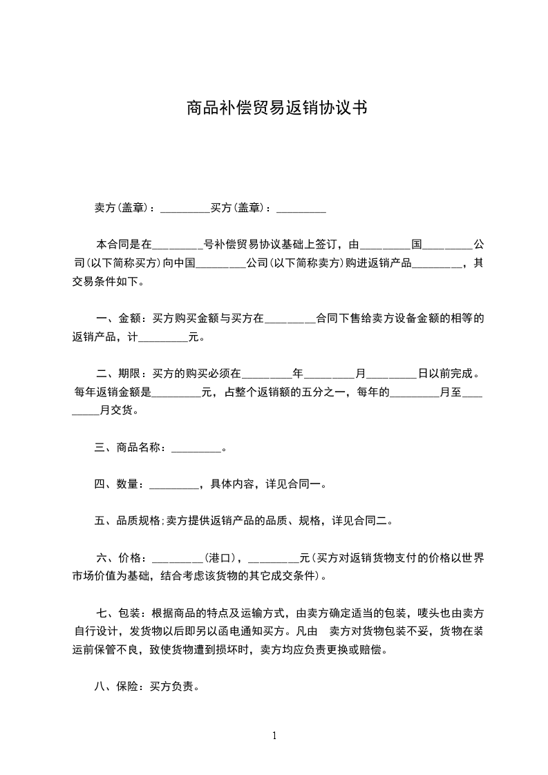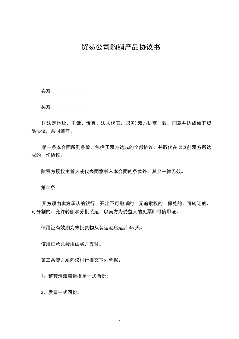 双方协商一致,同意并达成如下贸易协议,共同遵守: