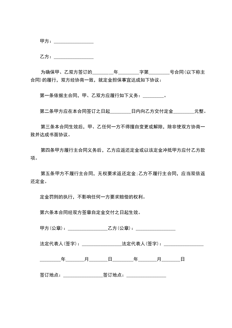 第二条甲方应在本合同签订之日起_________日内向乙方交付定金_________元整。