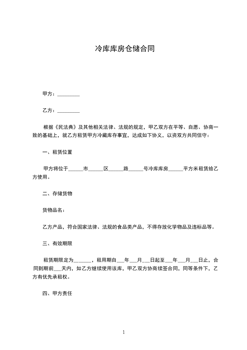 3.仓库用途:仅限于乙方用于存储______(货物名称)