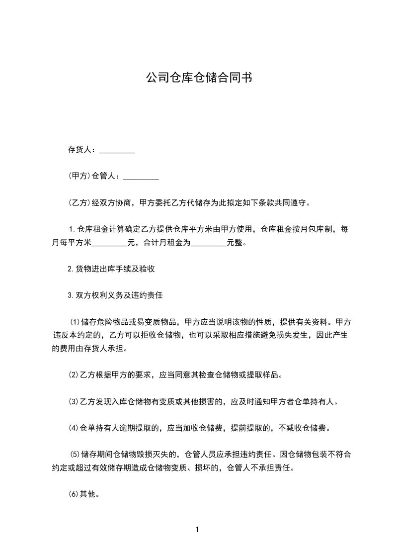 1.甲方为乙方提供[具体仓储服务内容,如货物存储、保管、装卸等]服务。