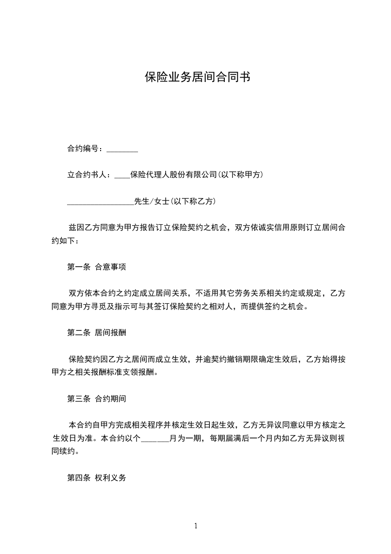 兹因乙方同意为甲方报告订立保险契约之机会,双方依诚实信用原则订立居间合约如下: