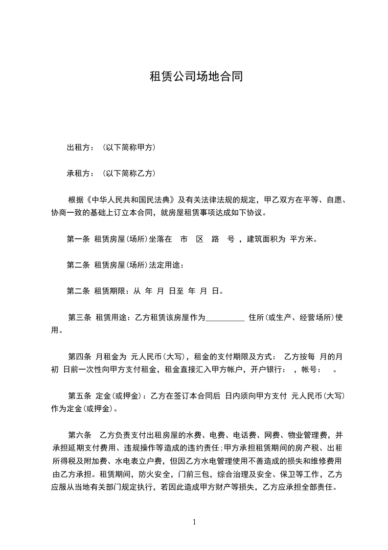 一、甲方将其归属所有权的,面积_______平方米,租给乙方使用。