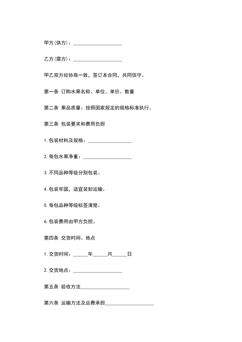 二、上述梨园( _________)亩,以每公斤( ______)元,大写_________ 元,卖给乙方,乙方应付给甲方定金( _______),大写:___________元。