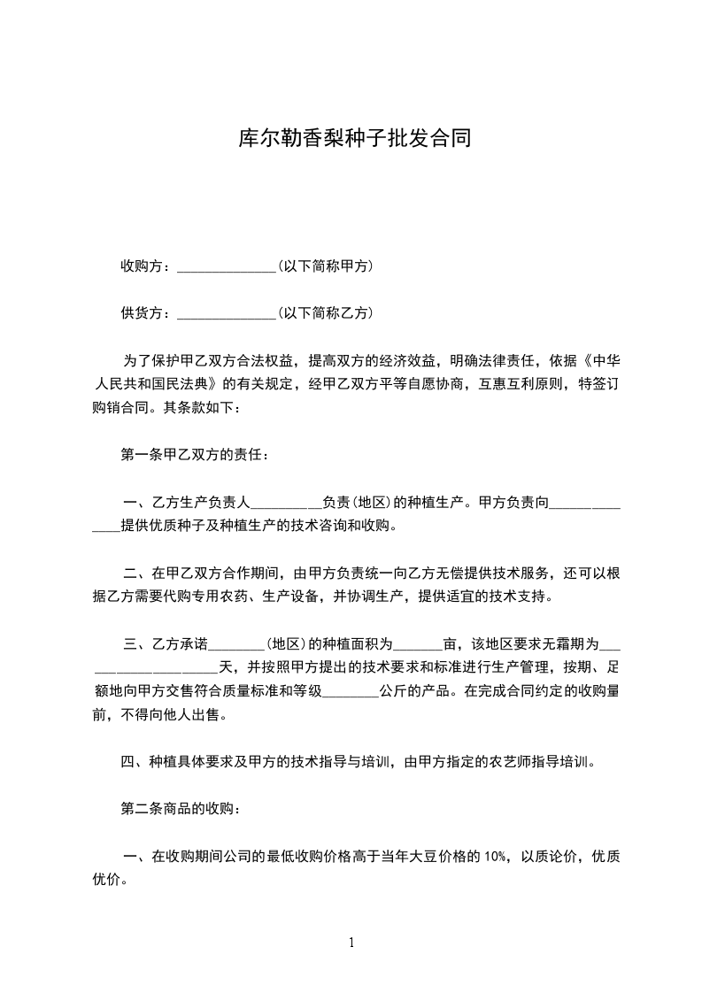 四、质量标准:单个重量克不封顶,甲方不准挑选好梨另售他人,发现后所有贡梨按二级梨付款,不准将不是本合同所签梨园的贡梨外拉进本合同的果园销售,发现罚款贰万元或所有香梨按______元/公斤付款。