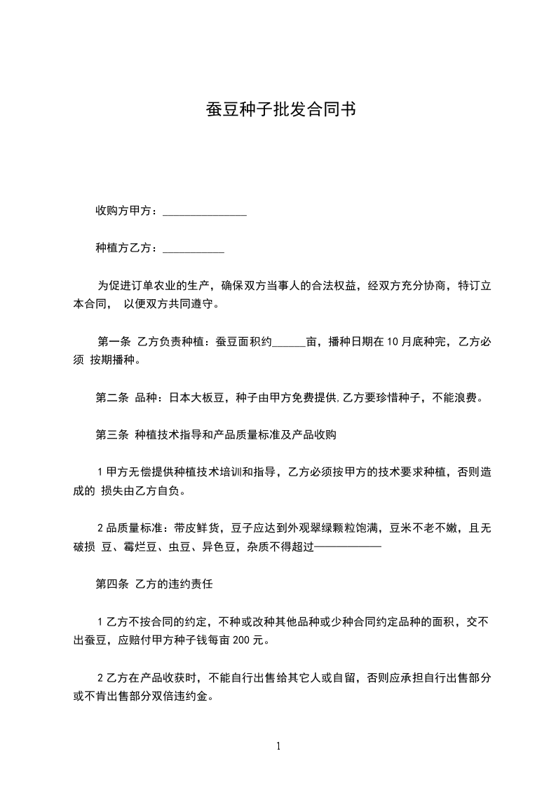 1乙方不按合同的约定,不种或改种其他品种或少种合同约定品种的面积,交不出蚕豆,应赔付甲方种子钱每亩200元。
