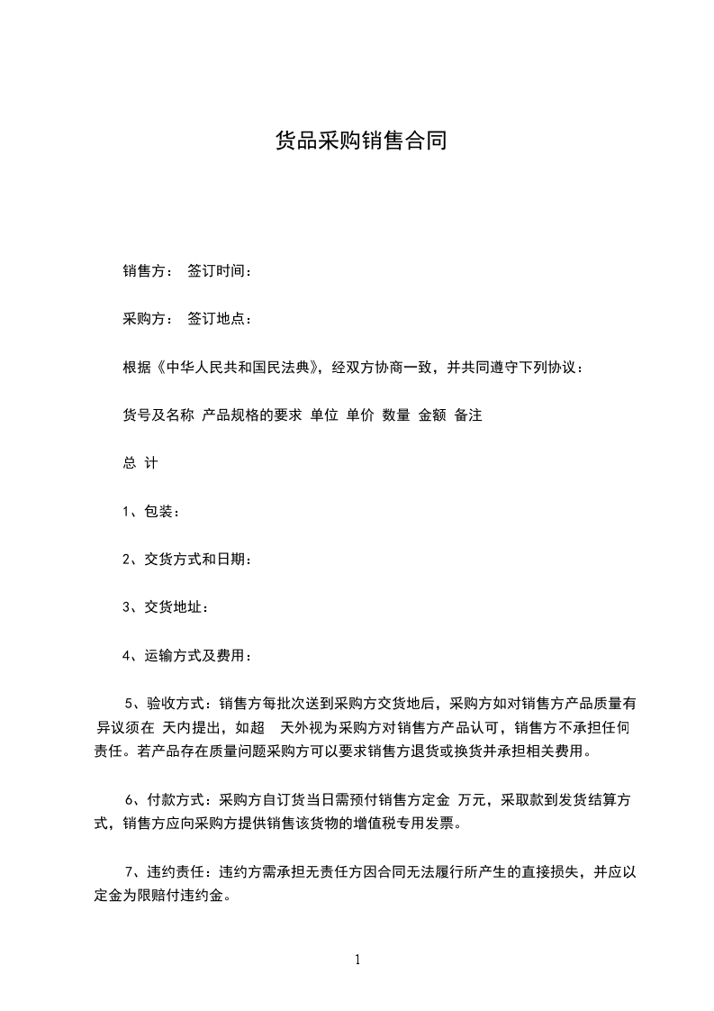 6、付款方式:采购方自订货当日需预付销售方定金 万元,采取款到发货结算方式,销售方应向采购方提供销售该货物的增值税专用发票。