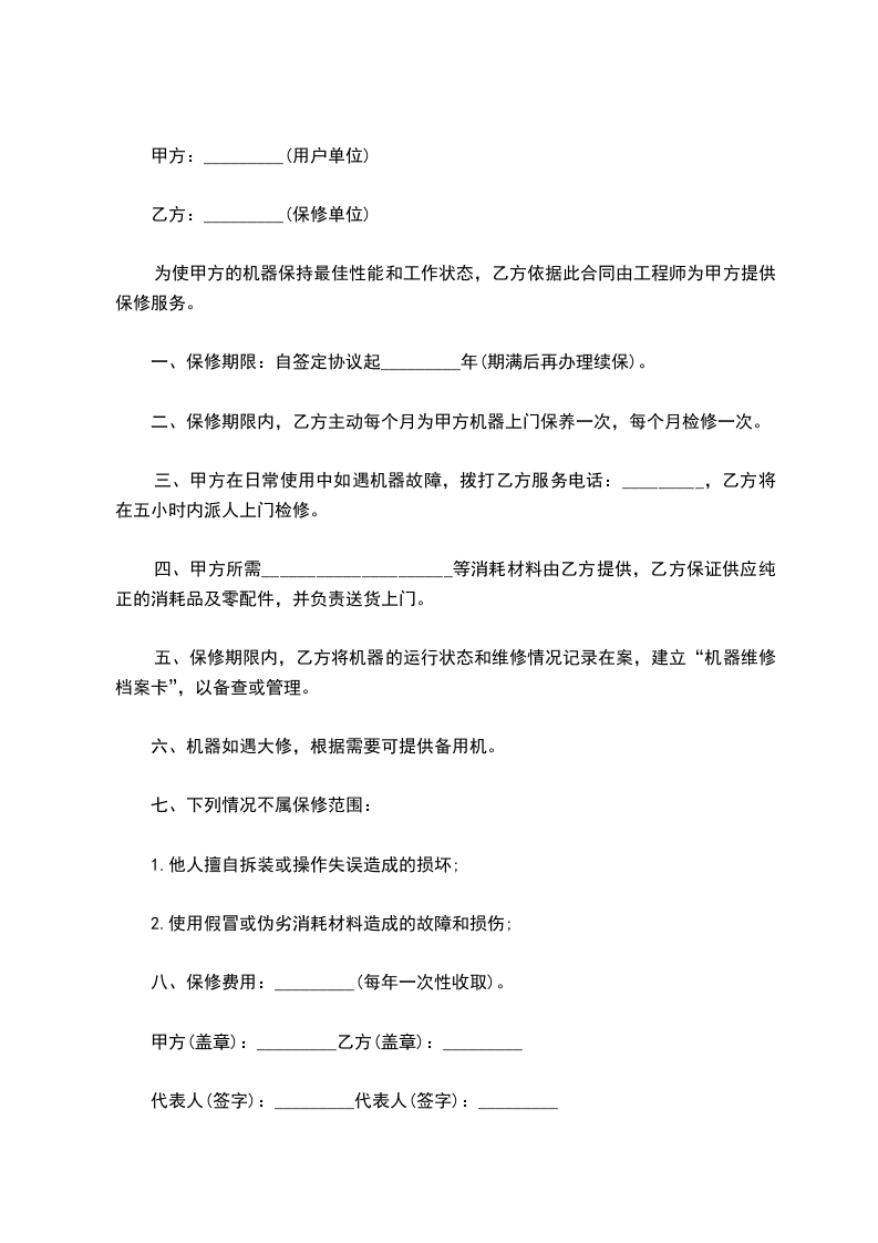 2.质保期外,乙方应继续为甲方提供设备维修及保养服务,收取合理的费用。甲方如需乙方提供服务,应提前[通知期限]天通知乙方。