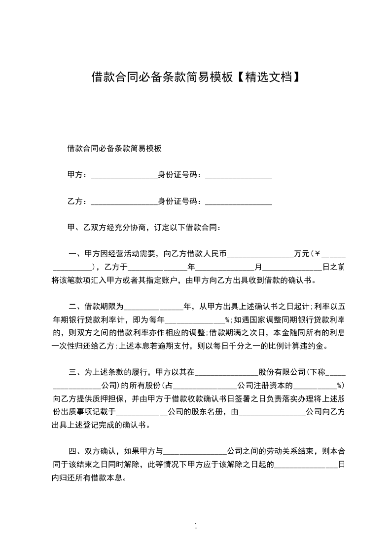 借款期限自______年______月______日起至______年______月______日止。如乙方需提前还款,应提前______日书面通知甲方,并征得甲方同意。