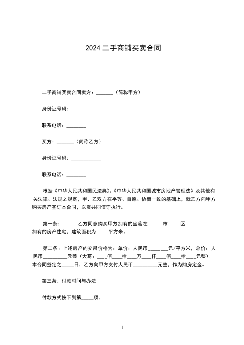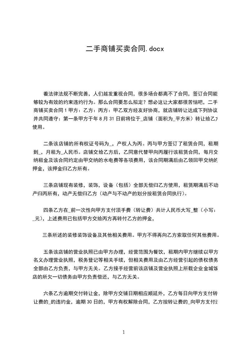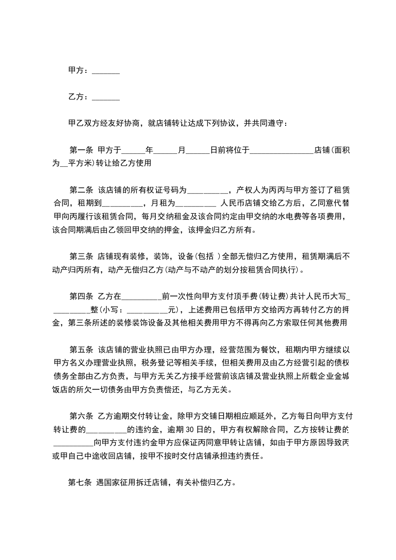 第一条 甲方于20 年 月 日前将位于________________店铺(面积为__平方米)转让给乙方使用。