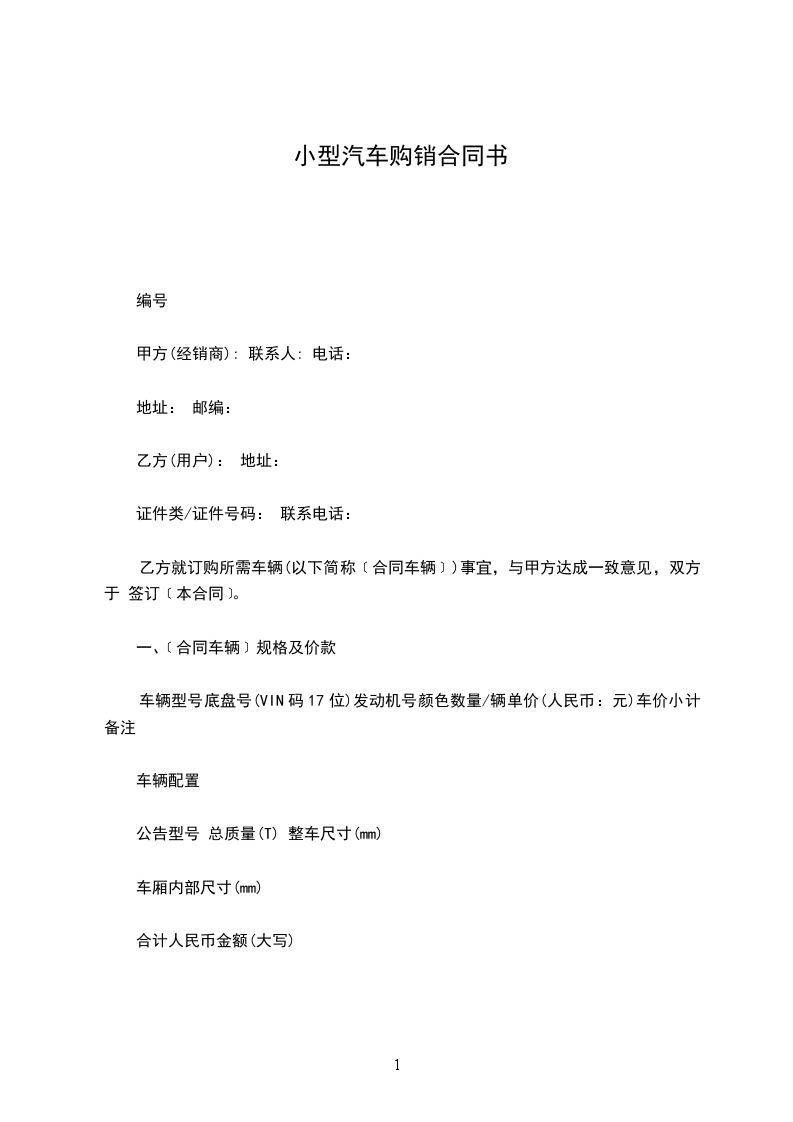 一、﹝合同车辆﹞规格及价款