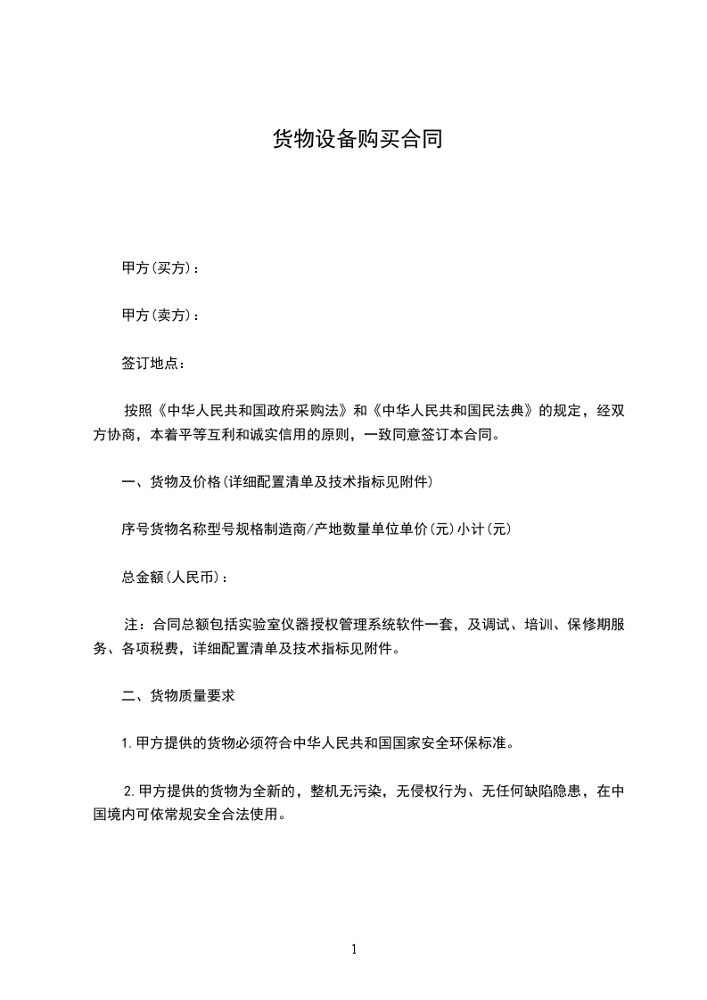 2.甲方提供的货物为全新的,整机无污染,无侵权行为、无任何缺陷隐患,在中国境内可依常规安全合法使用。