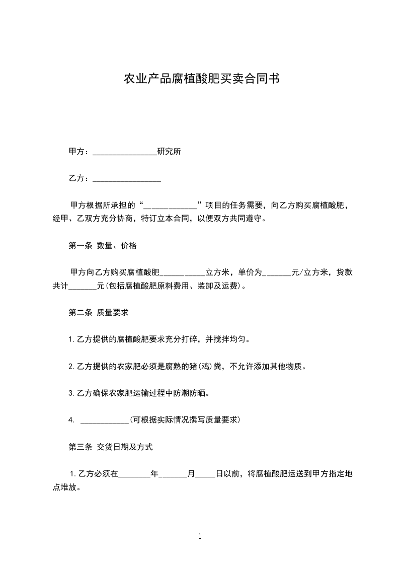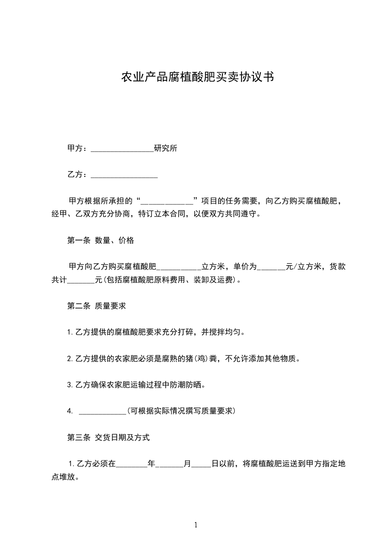甲方根据所承担的“_____________”项目的任务需要,向乙方购买腐植酸肥,经甲、乙双方充分协商,特订立本合同,以便双方共同遵守。