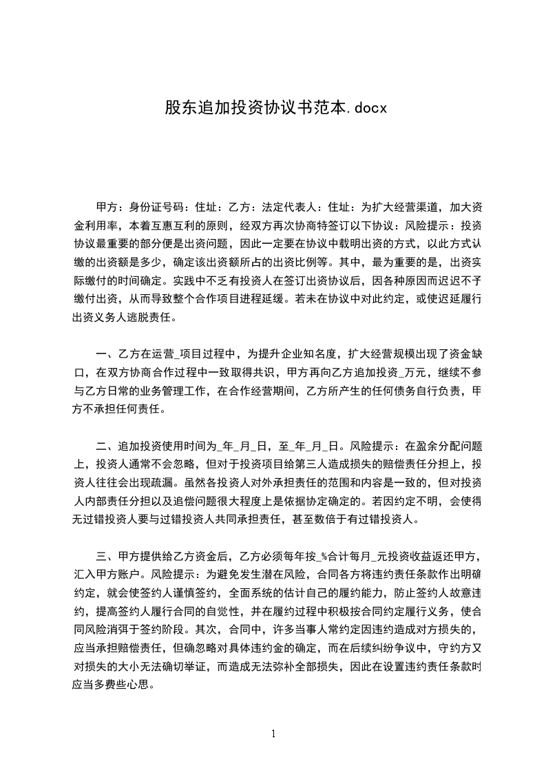 篇1追加资金投资协议书
