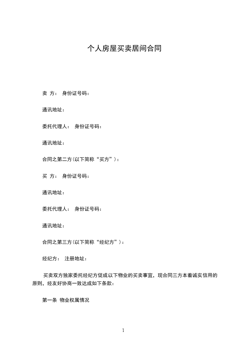 买卖双方独家委托经纪方促成以下物业的买卖事宜,现合同三方本着诚实信用的原则,经友好协商一致达成如下条款: