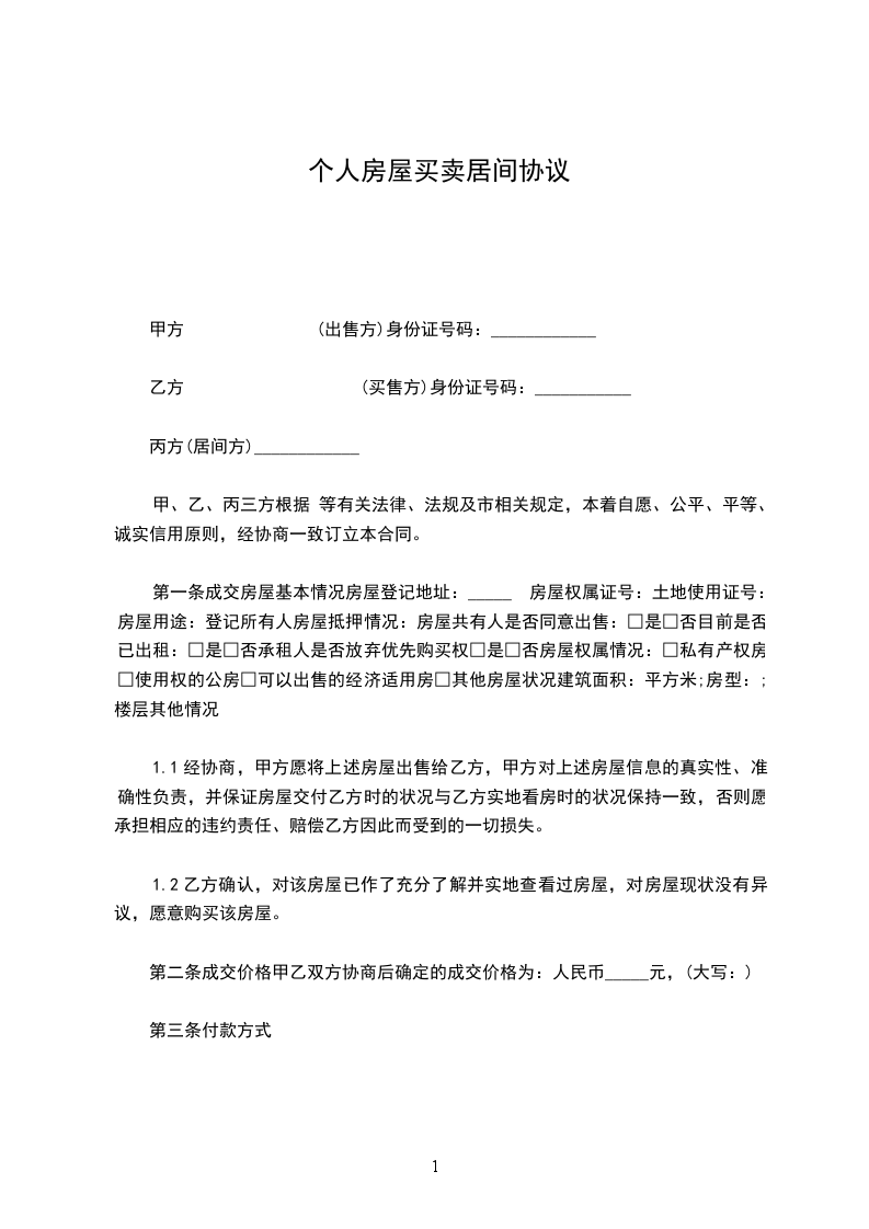 1、该物业之成交价为人民币(大写) 佰 拾 万 仟 佰 拾 元整(小写)¥ 元整(大小写不一致时,以大写为准,下同)。此成交价包含该物业所有楼款及现有已缴交和已发生之全部杂费(包括管道煤气初装费、有线电视初装费、电话初装费及入住费用、物业维修基金等等)。买卖双方应如实申报 成交价格,否则自行承担相应的法律责任。