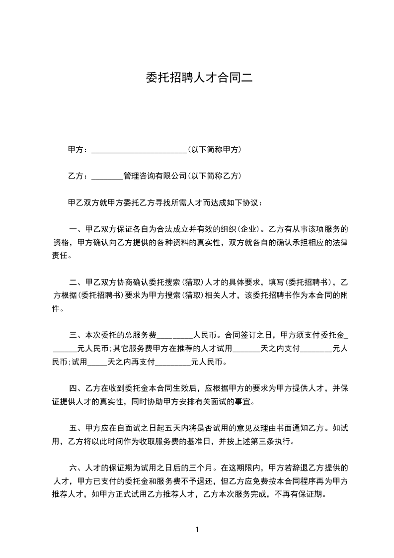 六、双方以“公开、公正、守信、诚意”为原则,共同遵守和实施以上招聘事宜。甲方必须通过乙方录用乙方提供的人员,未经乙方同意,甲方不得在乙方不知情的情况下私下与被推荐人员联系或达成有损乙方利益的约定,经发现作违约处理。