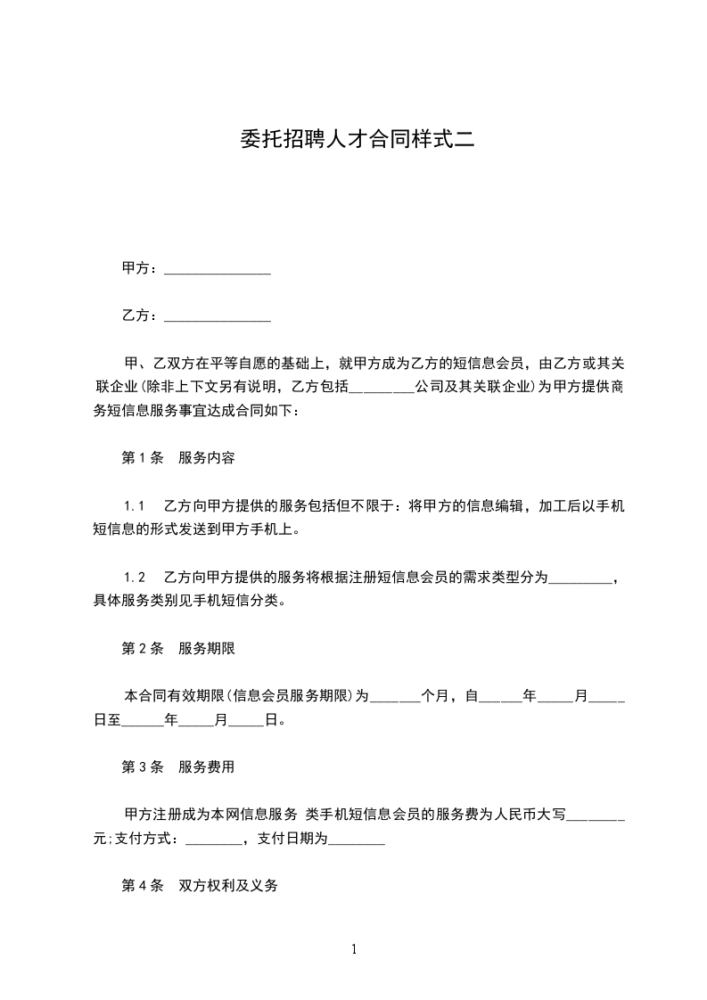 三、甲方在对乙方提供人员进行面试后的两个星期内应明确通知乙方是否录 用。逾期,乙方将视甲方为自动放弃。