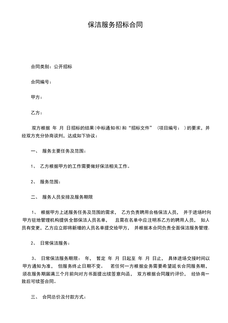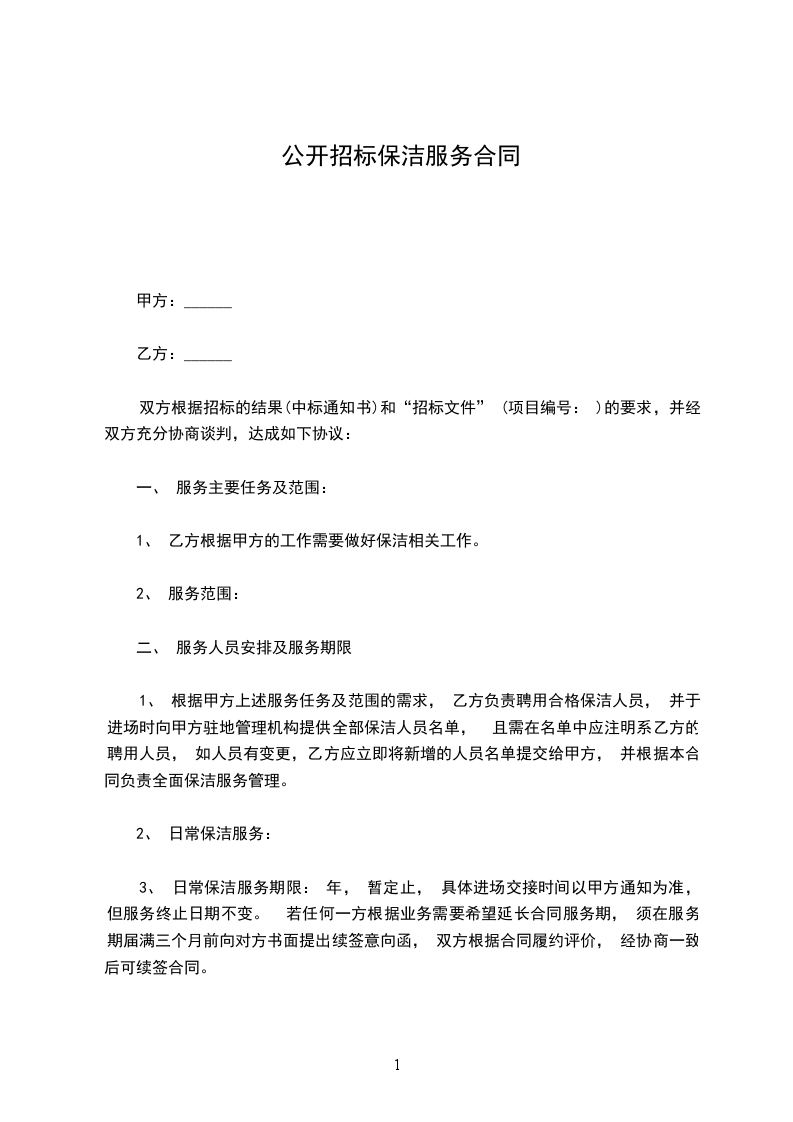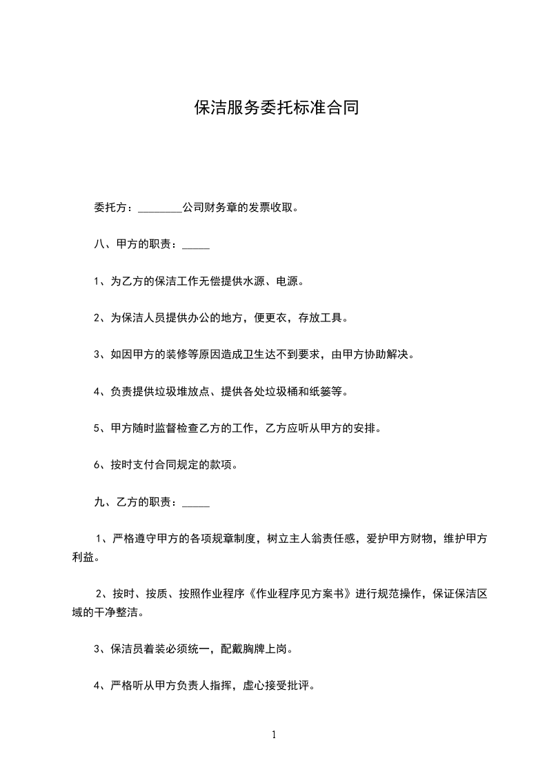 1、 乙方根据甲方的保洁服务需求, 全面负责保洁服务范围内的保洁管理业务所有工作,服务期满,保证顺利移交下一服务单位。