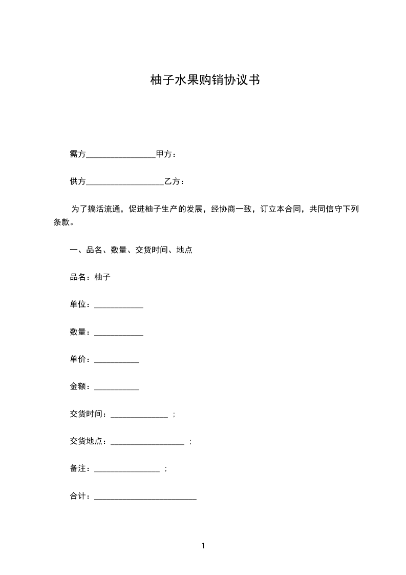 柚子水果买卖协议