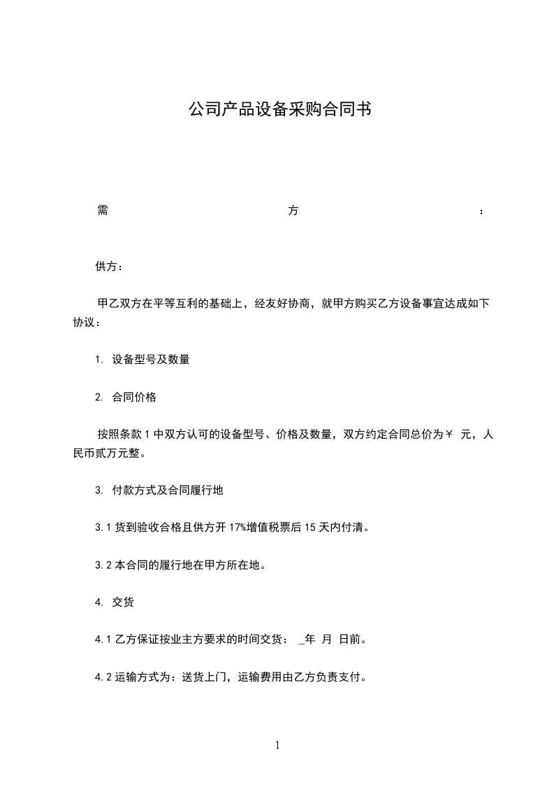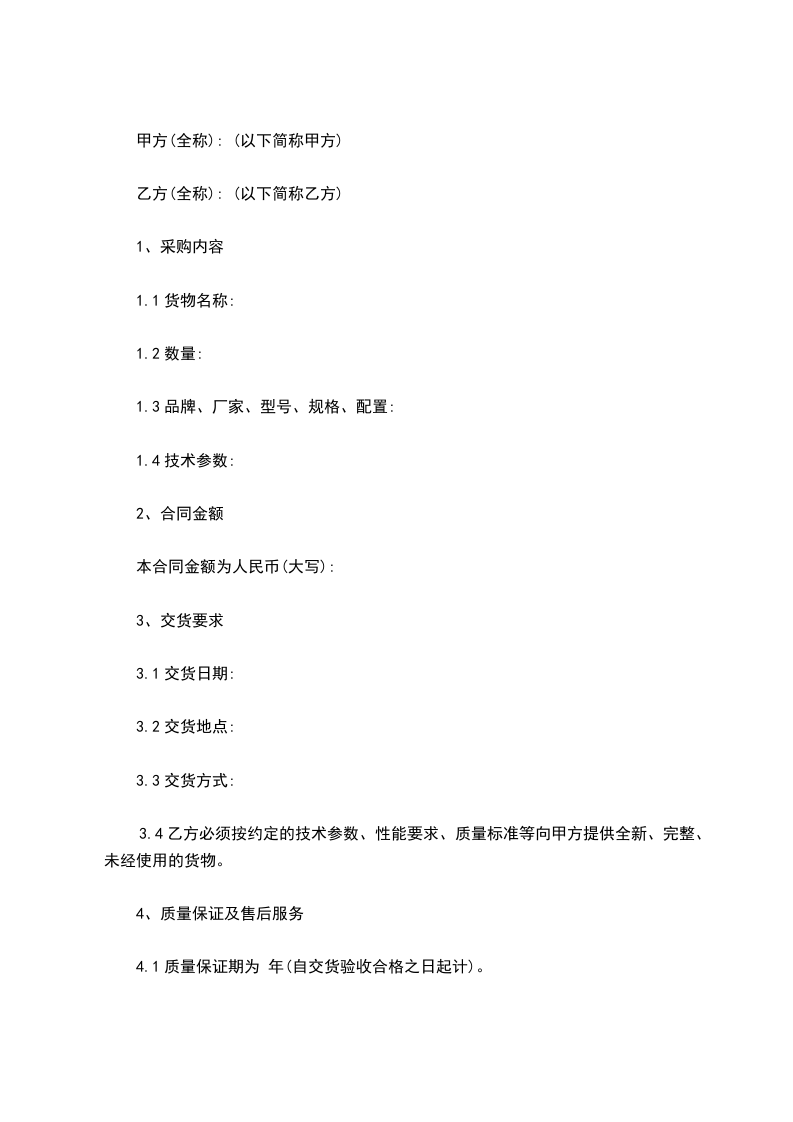 3.4乙方必须按约定的技术参数、性能要求、质量标准等向甲方提供全新、完整、未经使用的货物。