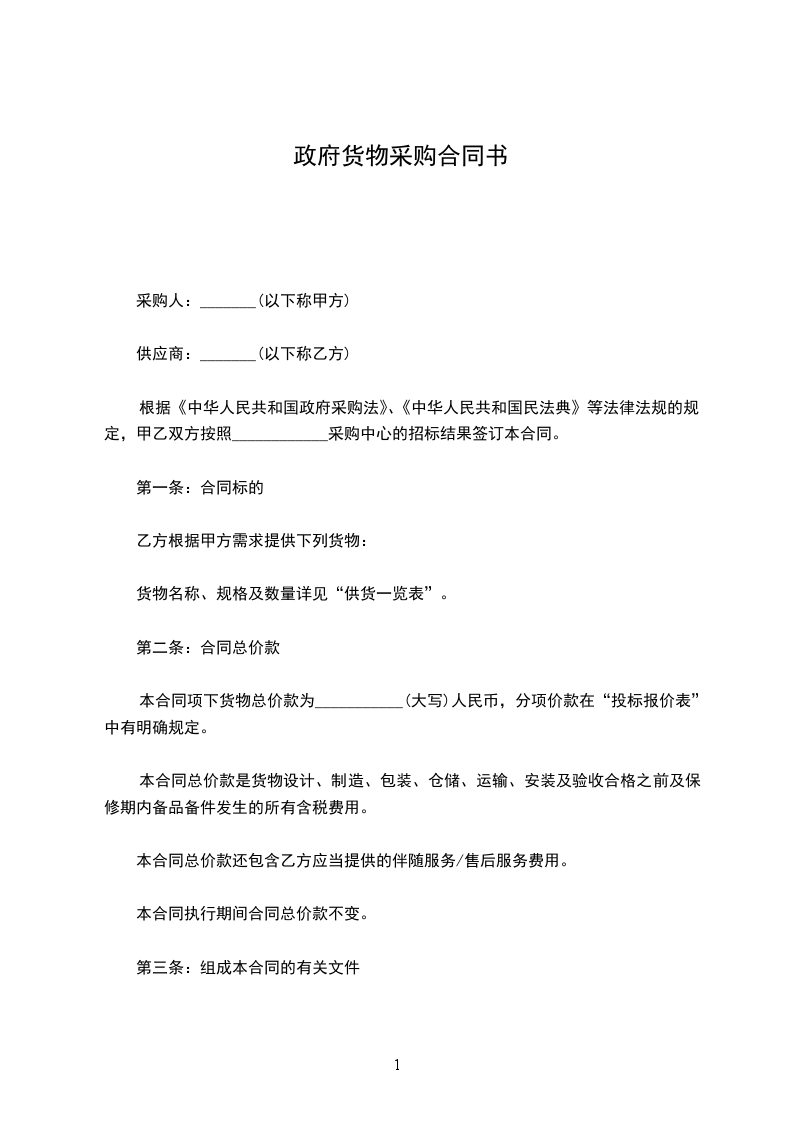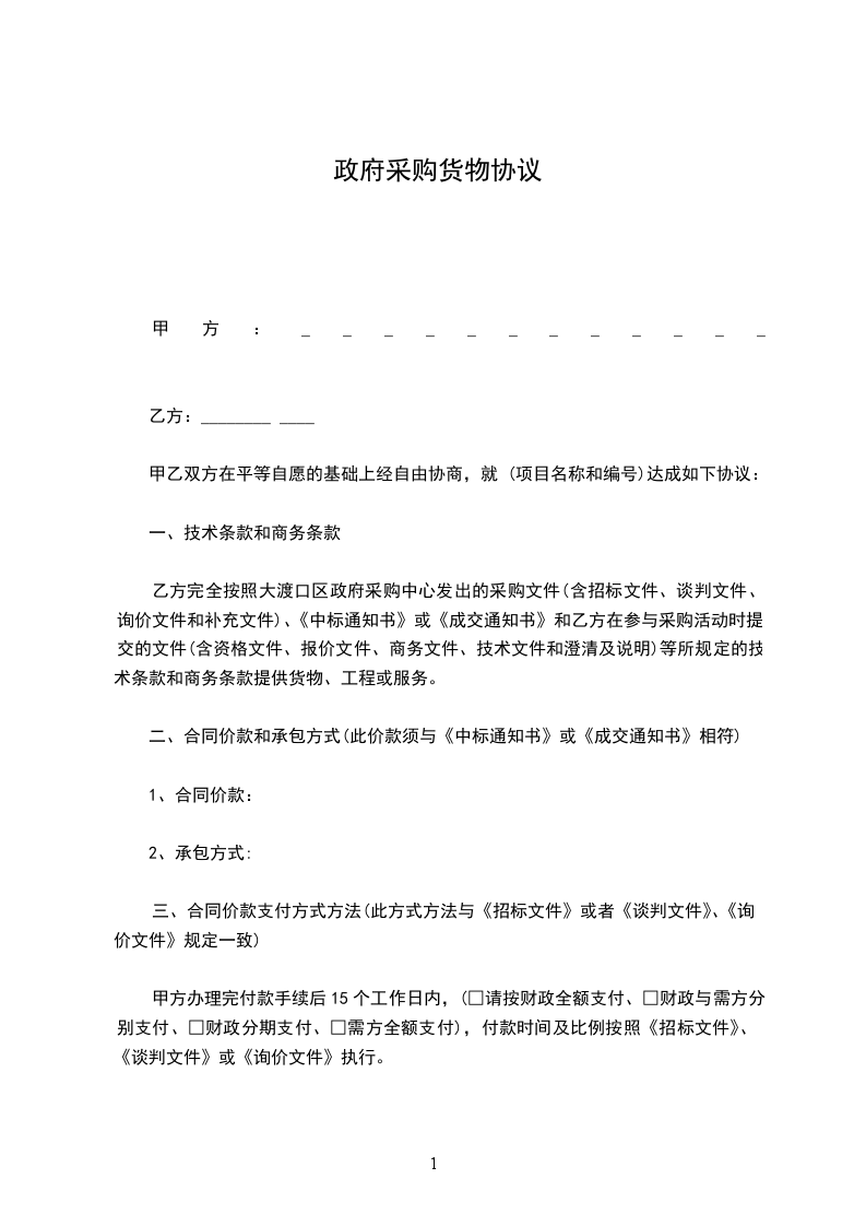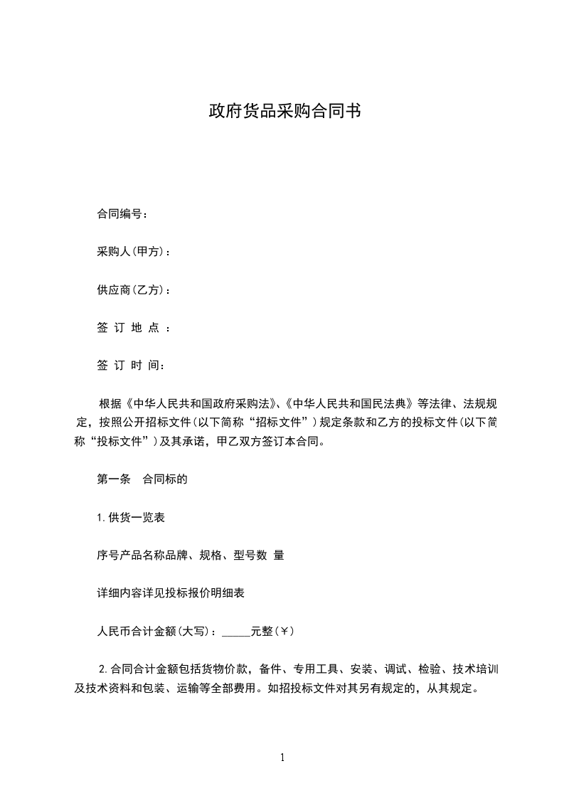 第一条 合同标的