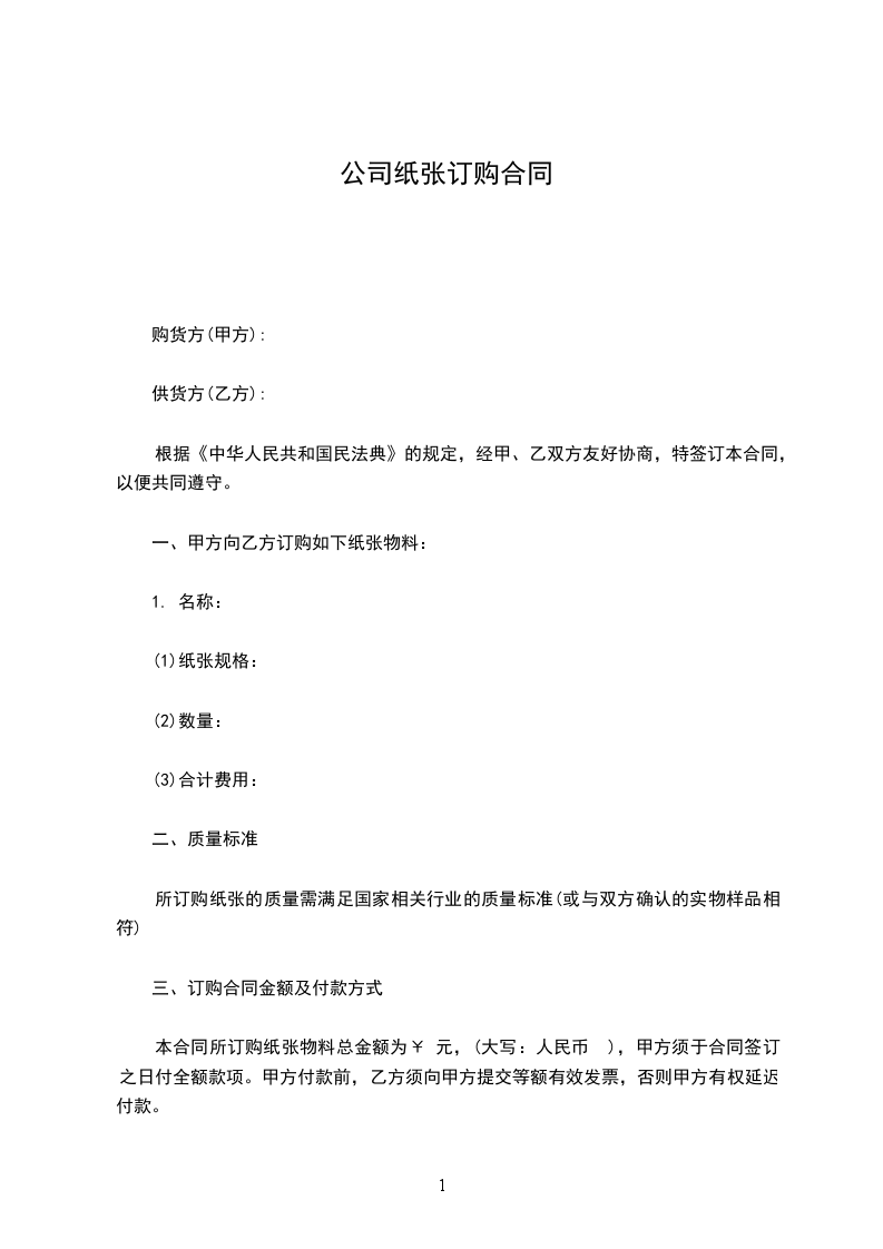本合同所订购纸张物料总金额为¥ 元,(大写:人民币 ),甲方须于合同签订之日付全额款项。甲方付款前,乙方须向甲方提交等额有效发票,否则甲方有权延迟付款。