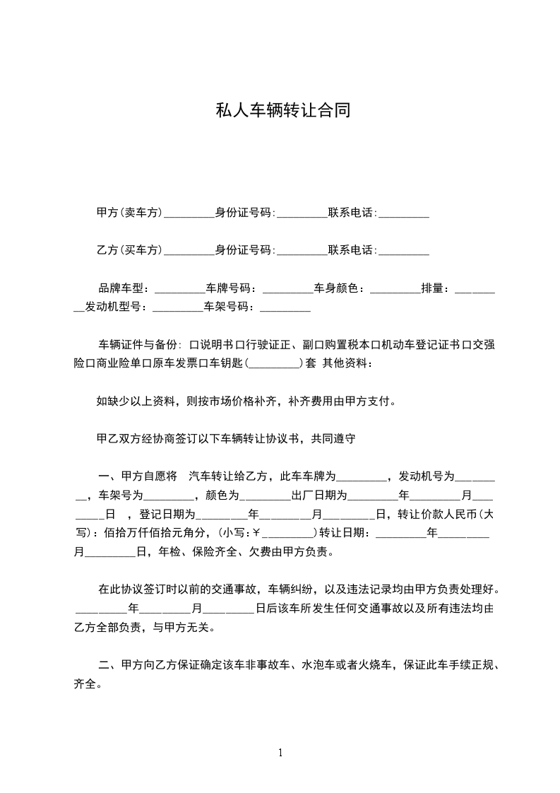 甲方(卖车方)_________身份证号码:_________联系电话:_________