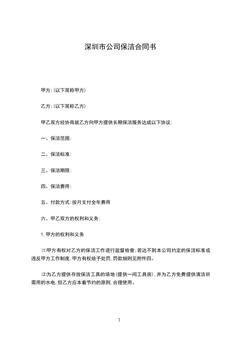 ⑴乙方按本合同约定的标准,高质量的完成保洁工作,并接受甲方的监督和检查;