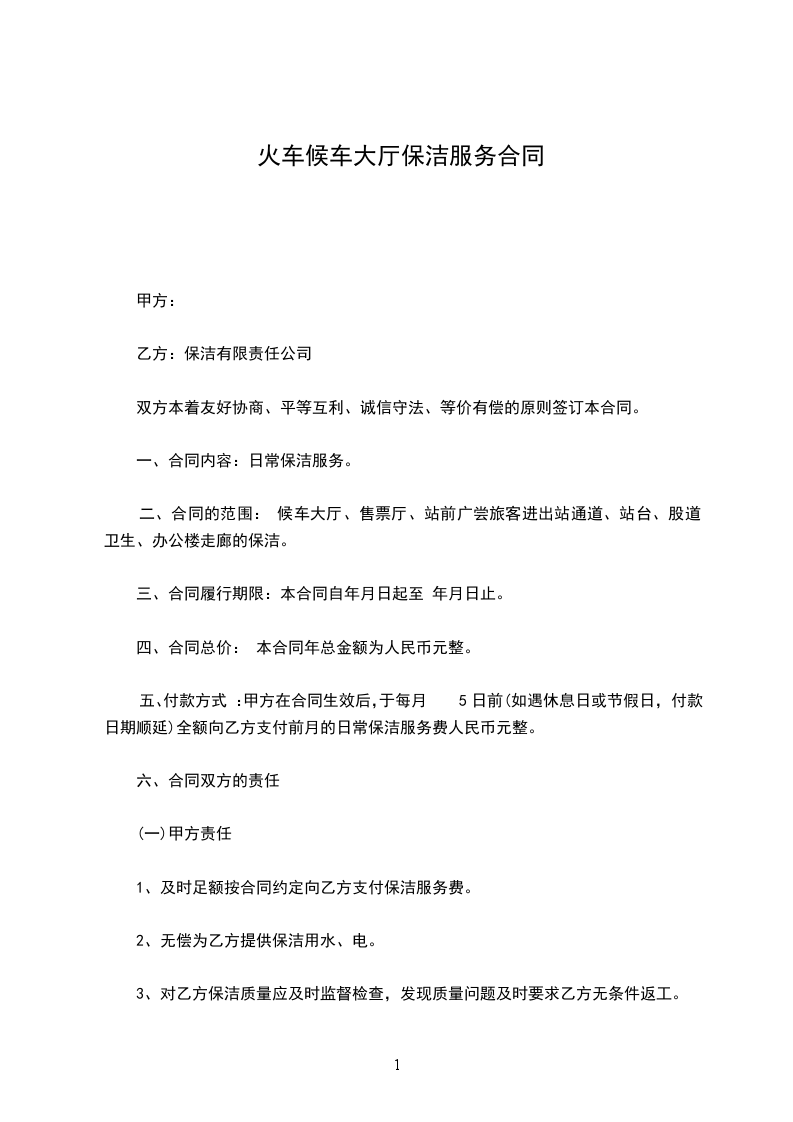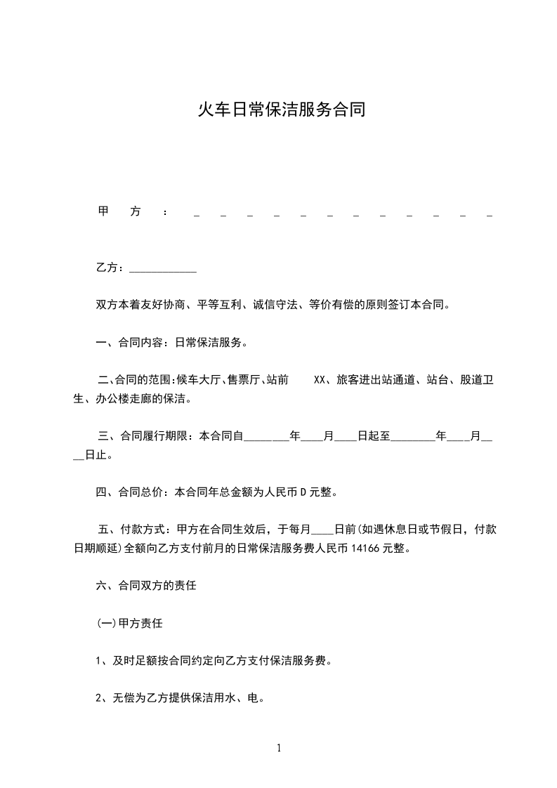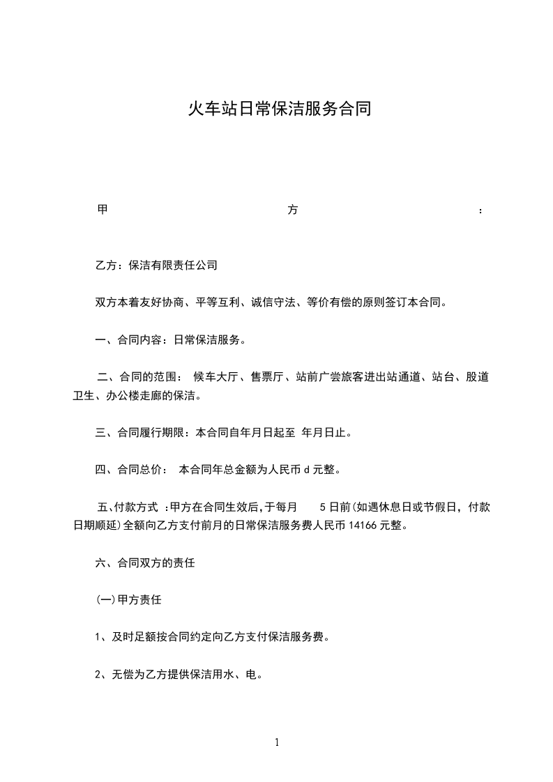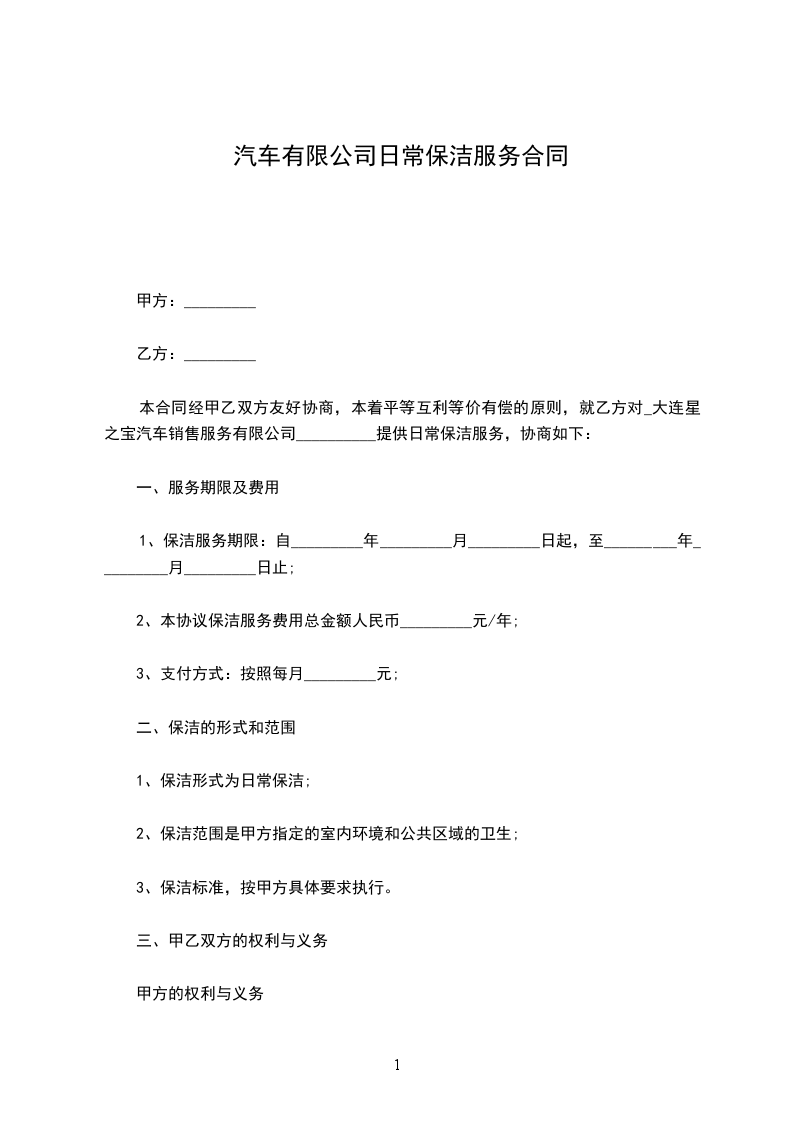 一、合同内容:日常保洁服务。
