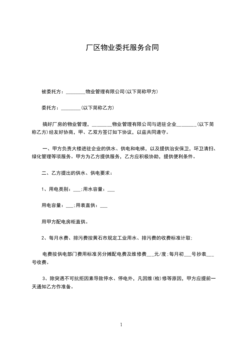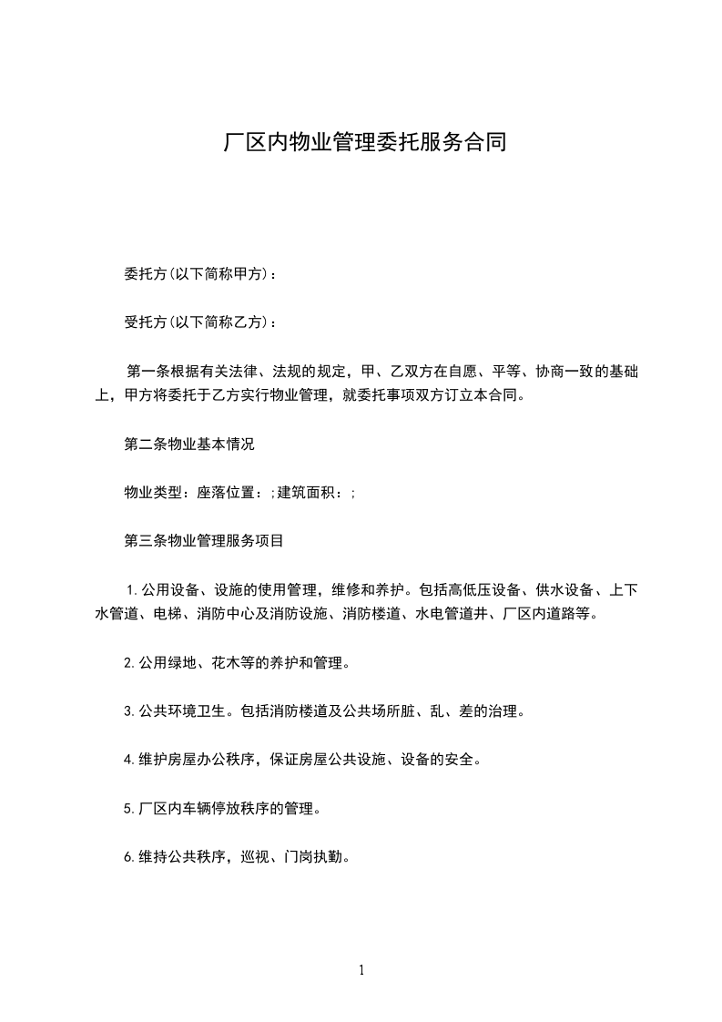 搞好厂房的物业管理,________物业管理有限公司与进驻企业________(以下简称乙方)经友好协商,甲、乙双方签订如下协议,以兹共同遵守。
