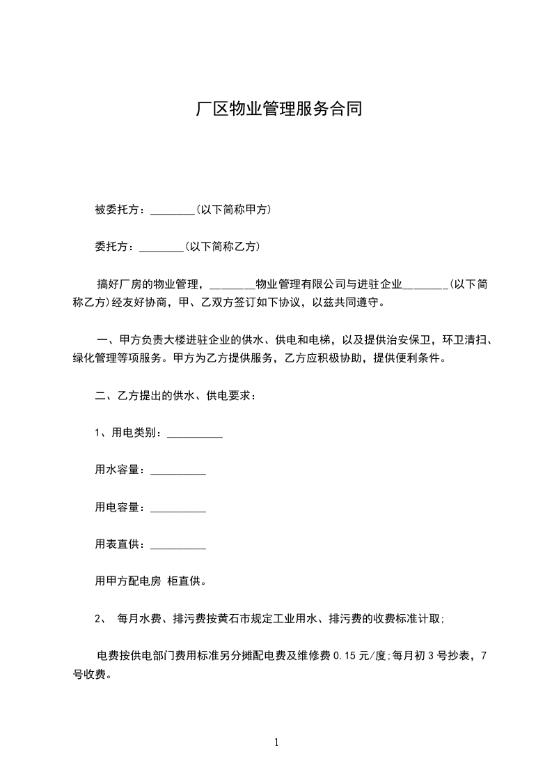 2、 每月水费、排污费按黄石市规定工业用水、排污费的收费标准计取;