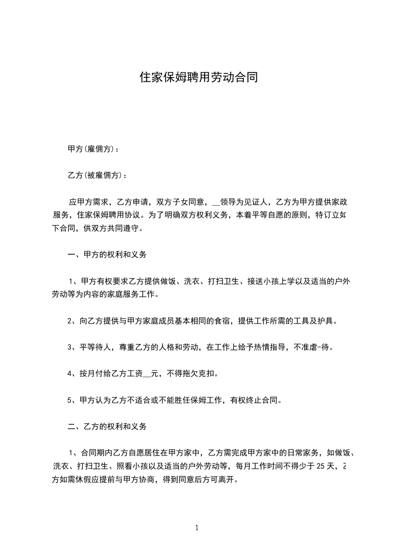 1.有权要求乙方提供 为内容的家庭服务工作。未商得乙方同意,不得增加上述规定以外的劳务负担。