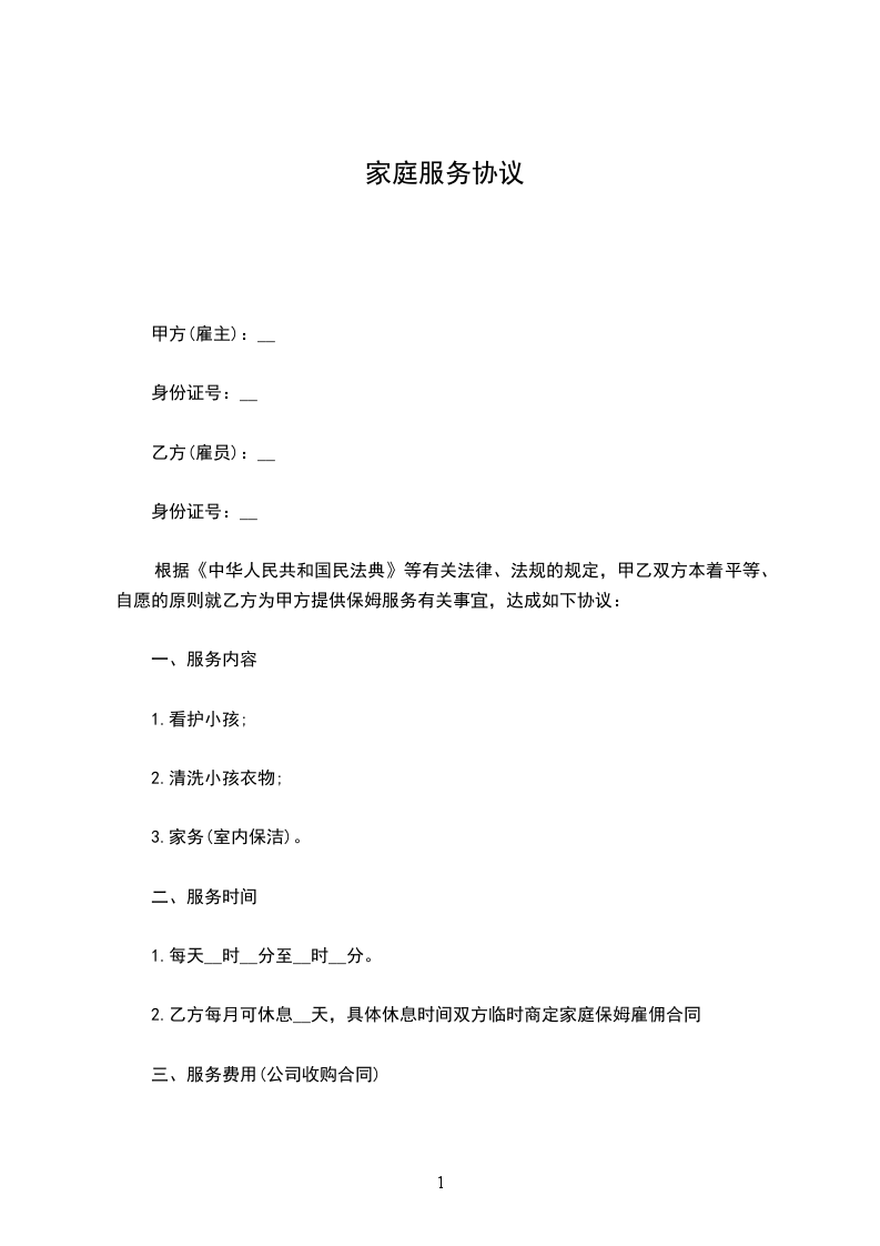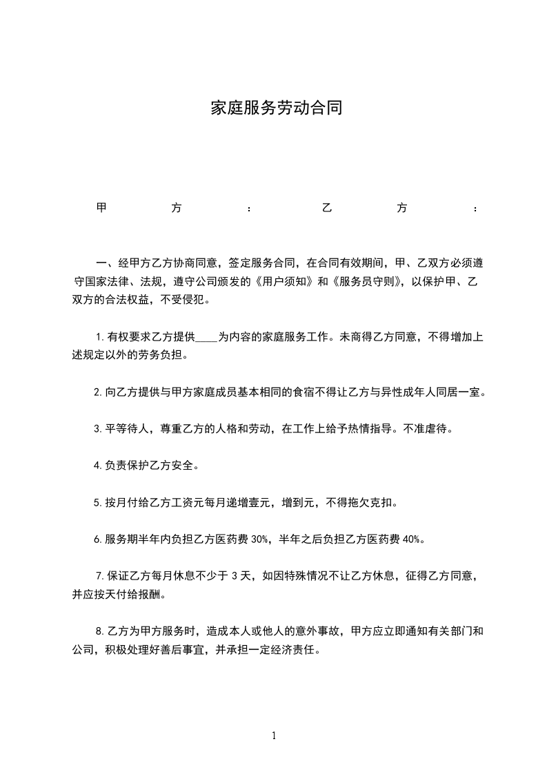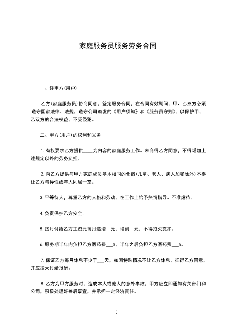 1.有权要求乙方提供____________为内容的家庭服务工作。未商得乙方同意,不得增加上述规定以外的劳务负担。