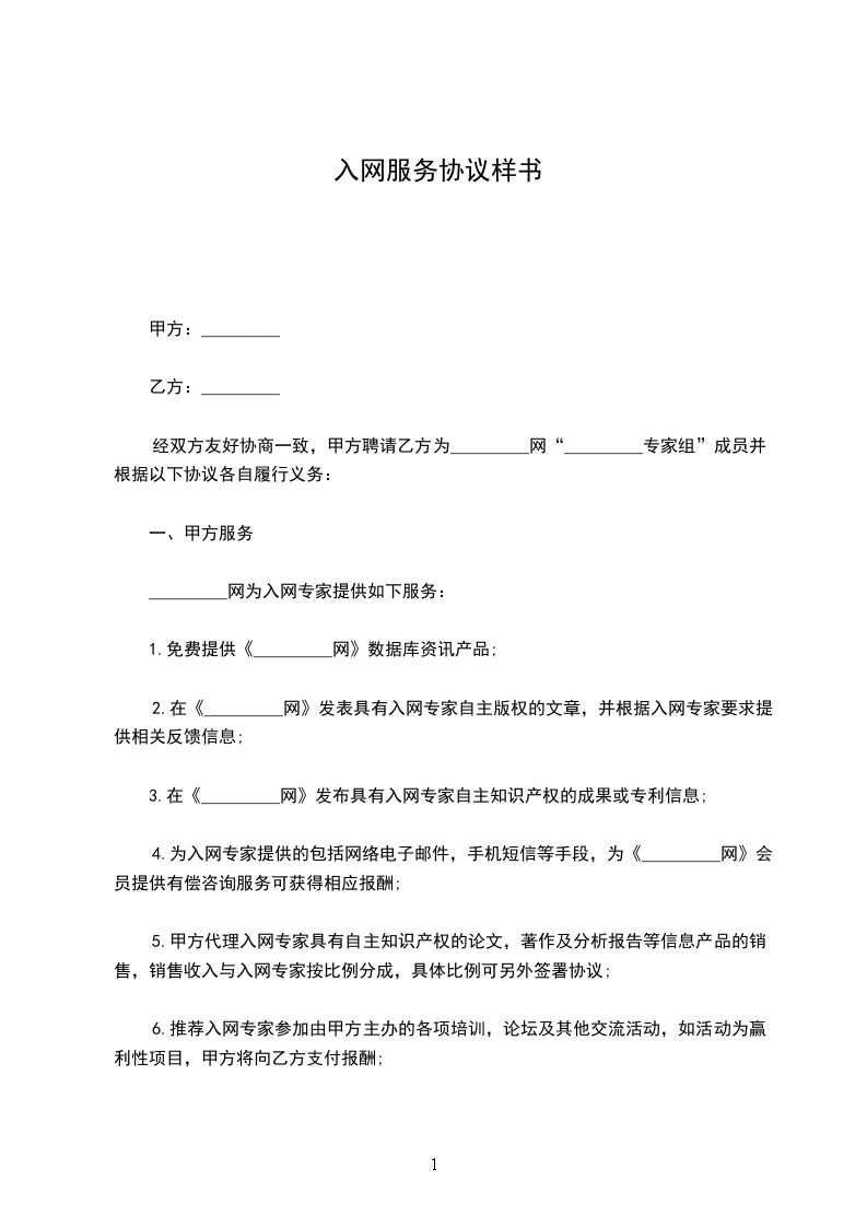 2.在《_________网》发表具有入网专家自主版权的文章,并根据入网专家要求提供相关反馈信息;