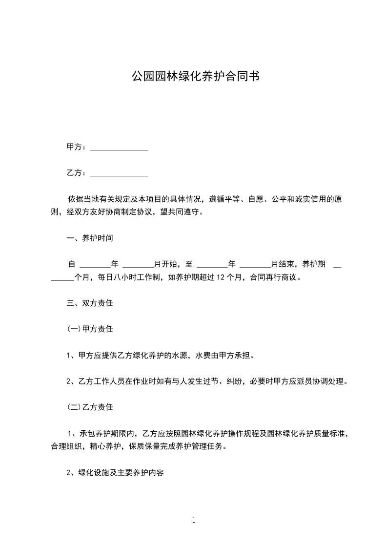 1、甲方应提供乙方绿化养护的水源,水费由甲方承担。
