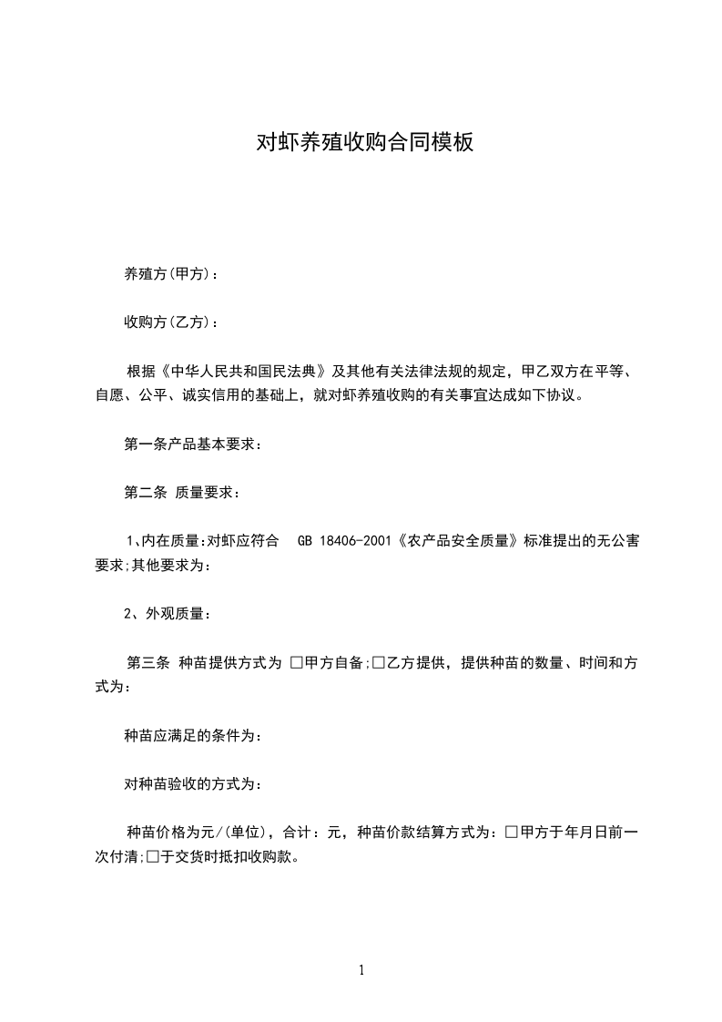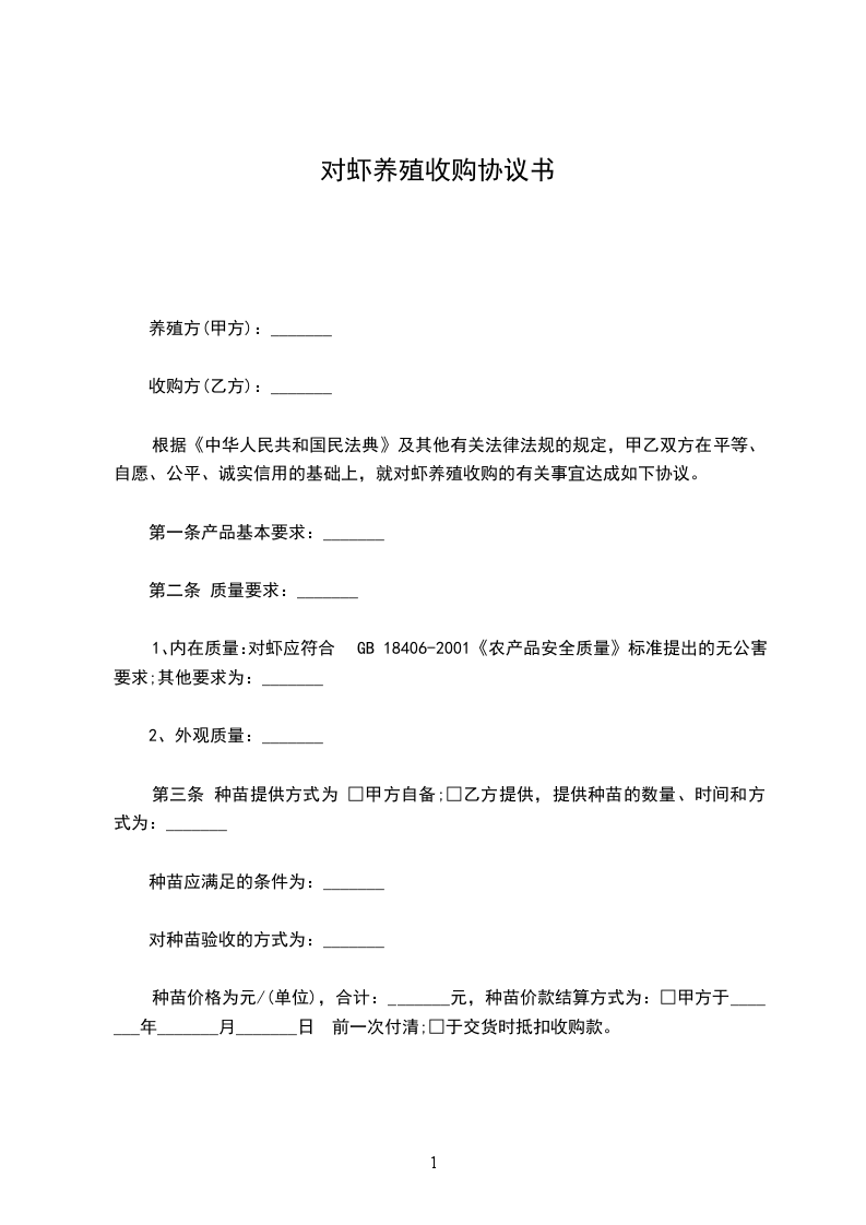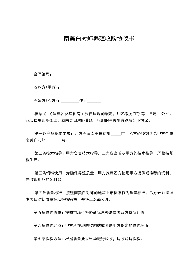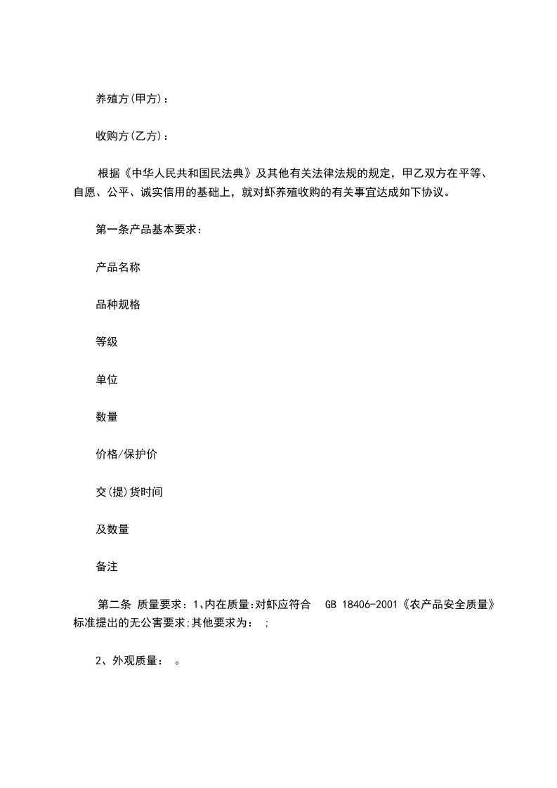 根据《中华人民共和国民法典》及其他有关法律法规的规定,甲乙双方在平等、自愿、公平、诚实信用的基础上,就对虾养殖收购的有关事宜达成如下协议。
