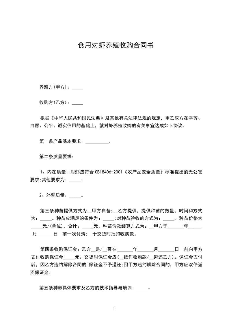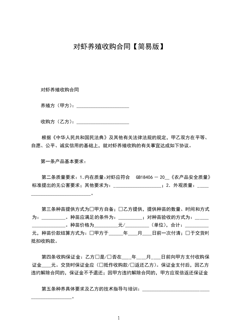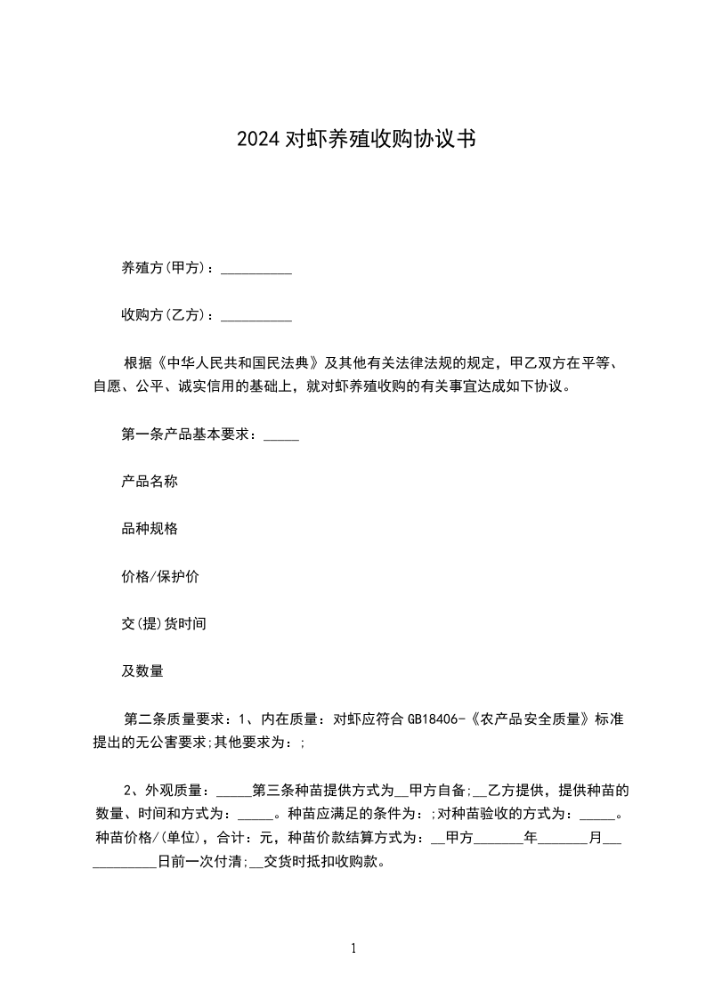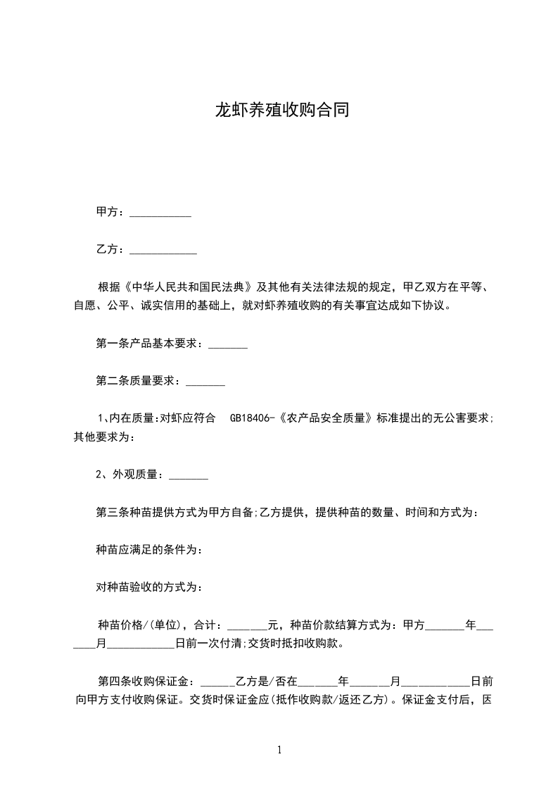 根据《中华人民共和国民法典》及其他有关法律法规的规定,甲乙双方在平等、自愿、公平、诚实信用的基础上,就对虾养殖收购的有关事宜达成如下协议。