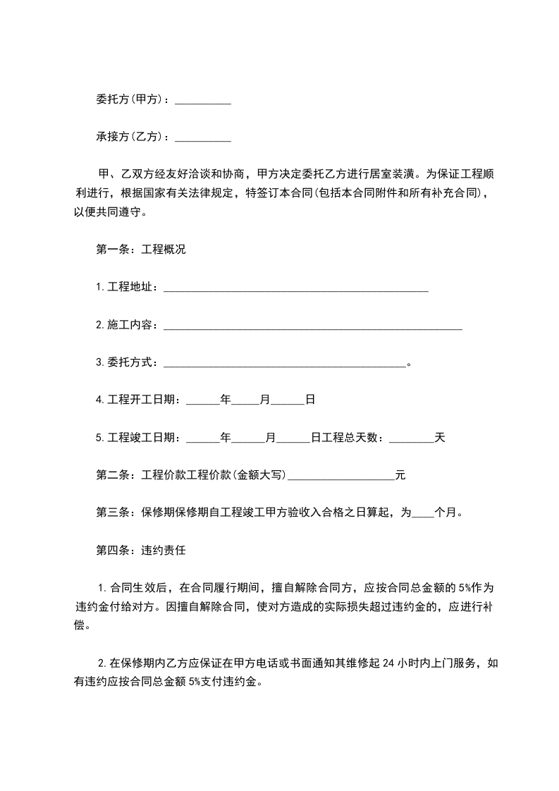 第三条:保修期保修期自工程竣工甲方验收入合格之日算起,为____个月。