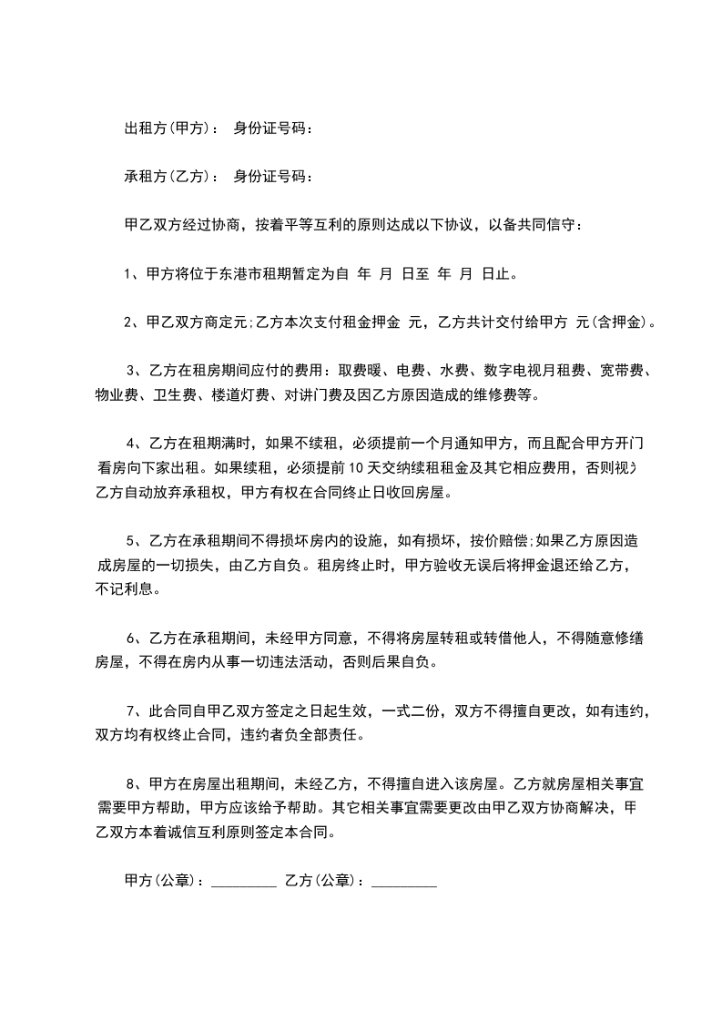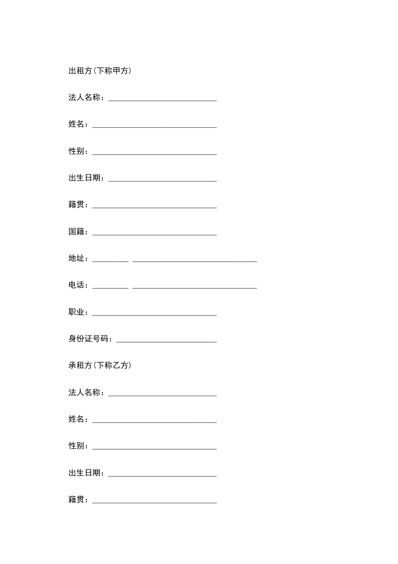 甲方(租赁人):____________身份证号:____________联系电话:____________
