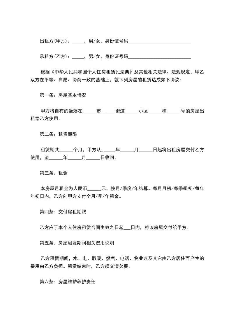 乙方(承租人):____________身份证号:____________联系电话:____________