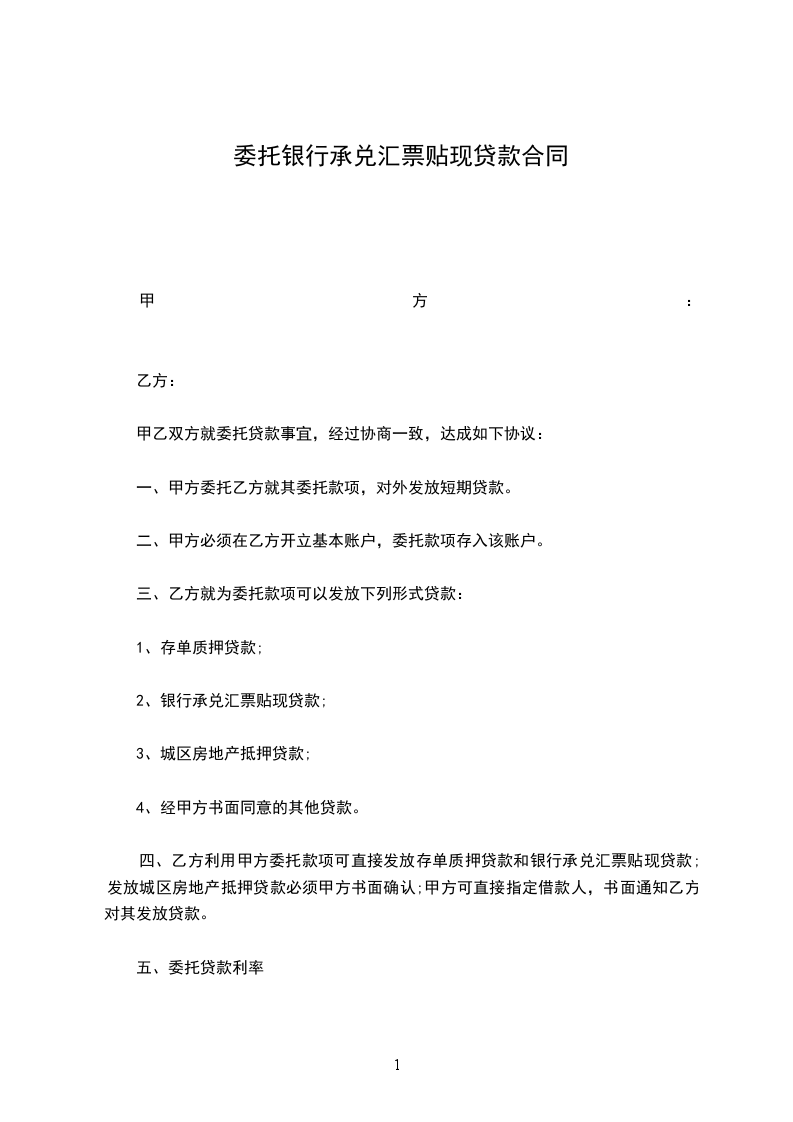 四、乙方利用甲方委托款项可直接发放存单质押贷款和银行承兑汇票贴现贷款;发放城区房地产抵押贷款必须甲方书面确认;甲方可直接指定借款人,书面通知乙方对其发放贷款。