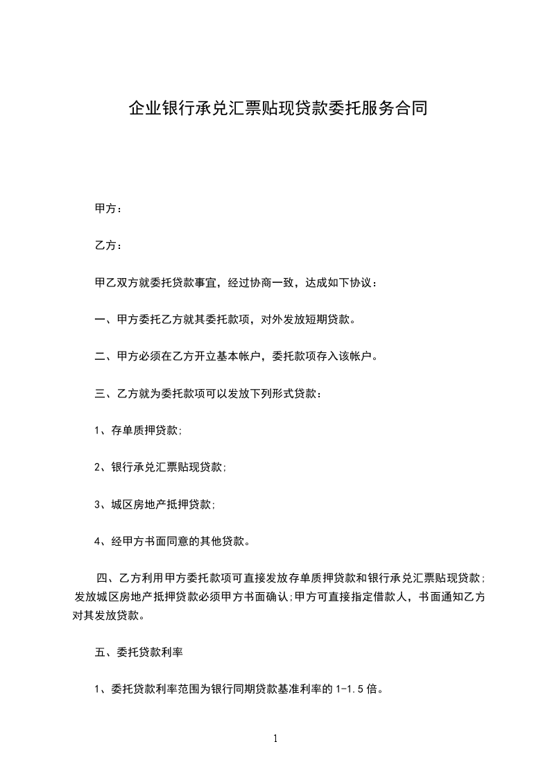 四、乙方利用甲方委托款项可直接发放存单质押贷款和银行承兑汇票贴现贷款;发放城区房地产抵押贷款必须甲方书面确认;甲方可直接指定借款人,书面通知乙方对其发放贷款。