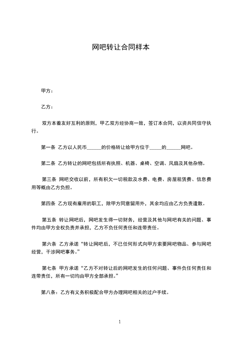 第一条 乙方以人民币______的价格转让给甲方位于_____的______网吧。